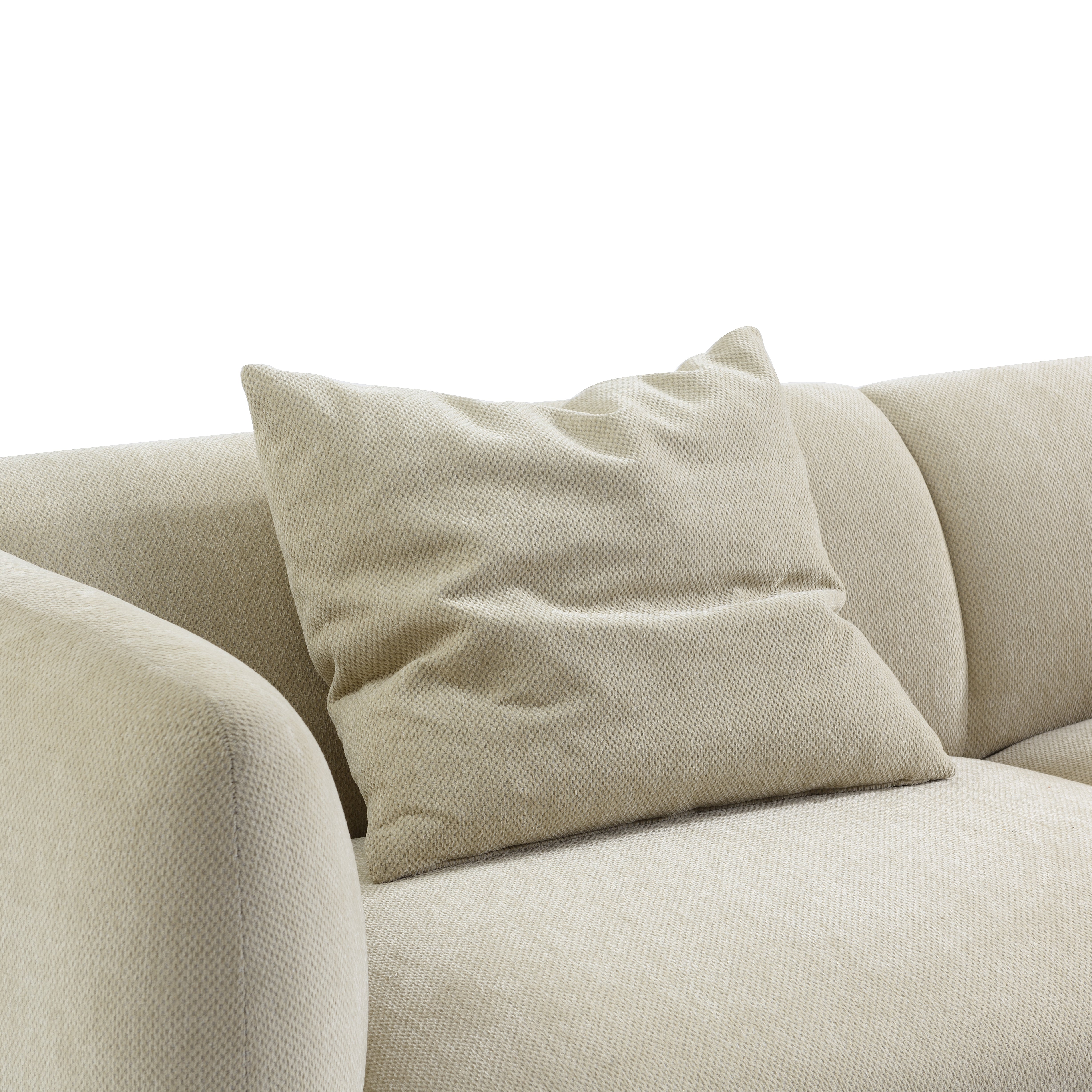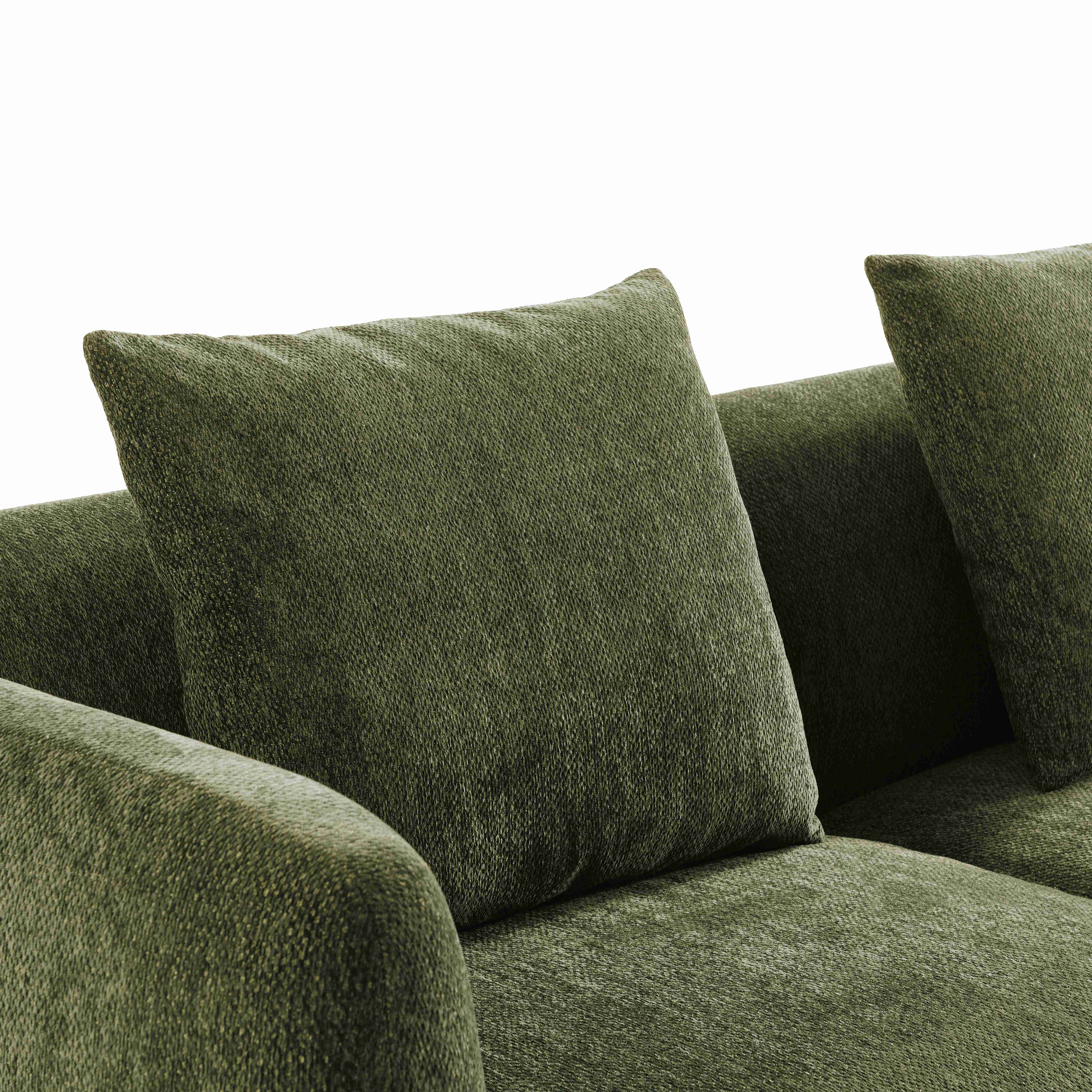 Constructed with solid pine wood frame with plywood and FSC certified. Features high density foam and with a Dacron wrap seat and back fixed cushions. Supported by S-springs and webbing, and upholstered in a soft chenille style fabric. Legs to be assembled.