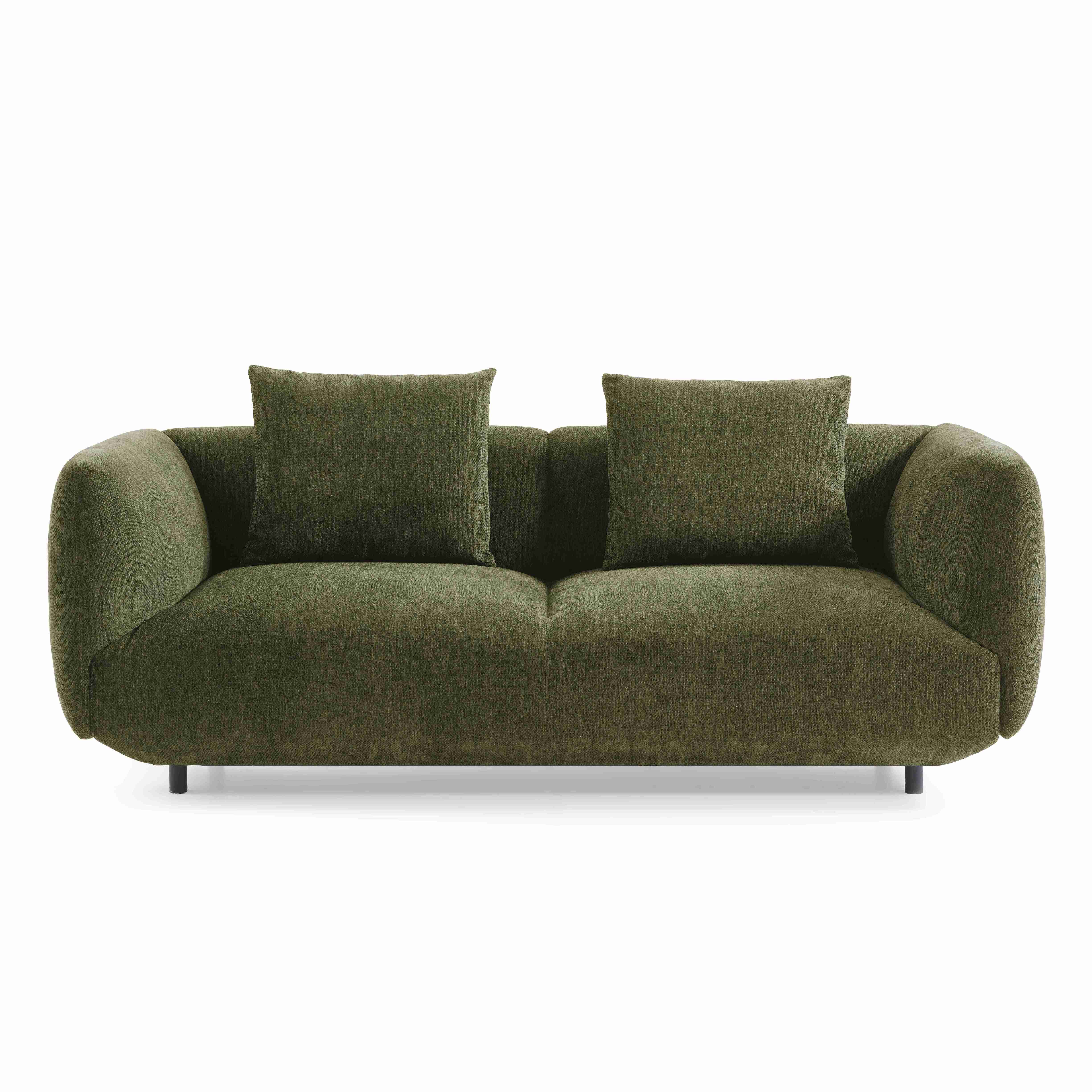 The Horizon Sofa 3 or 4 seater, embodies modern sophistication with its organic curves, plush silhouette, and deep seating designed for ultimate relaxation. Its gently rounded arms and sculptural form create a soft yet structured look, making it the perfect addition to contemporary and minimalist interiors. Upholstered in a luxuriously textured fabric, the Horizon Sofa offers a refined tactile experience, enhanced by two coordinating scatter cushions for added comfort and layering. Available in rich Green, Deep Navy and Soft Natural for versatile styling.