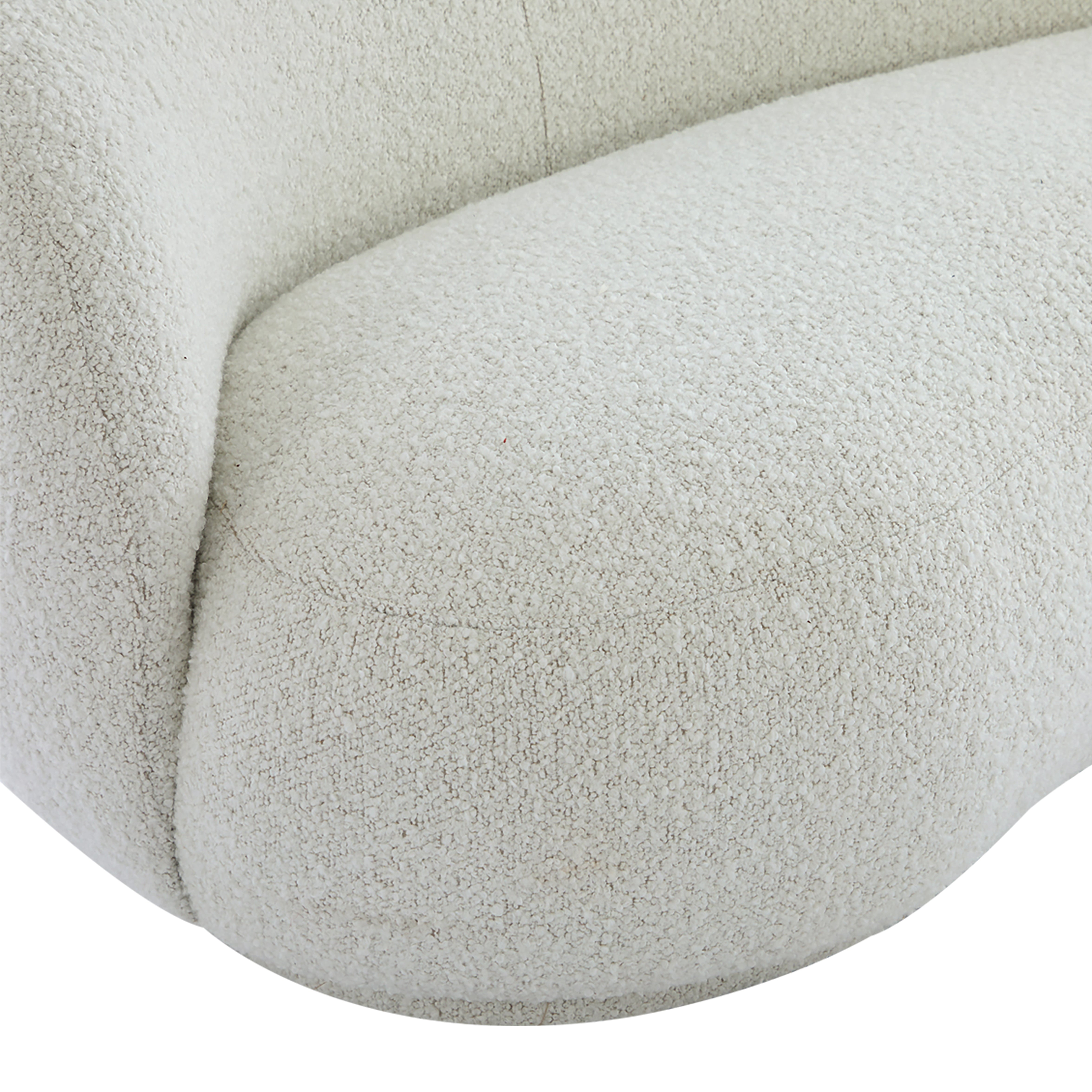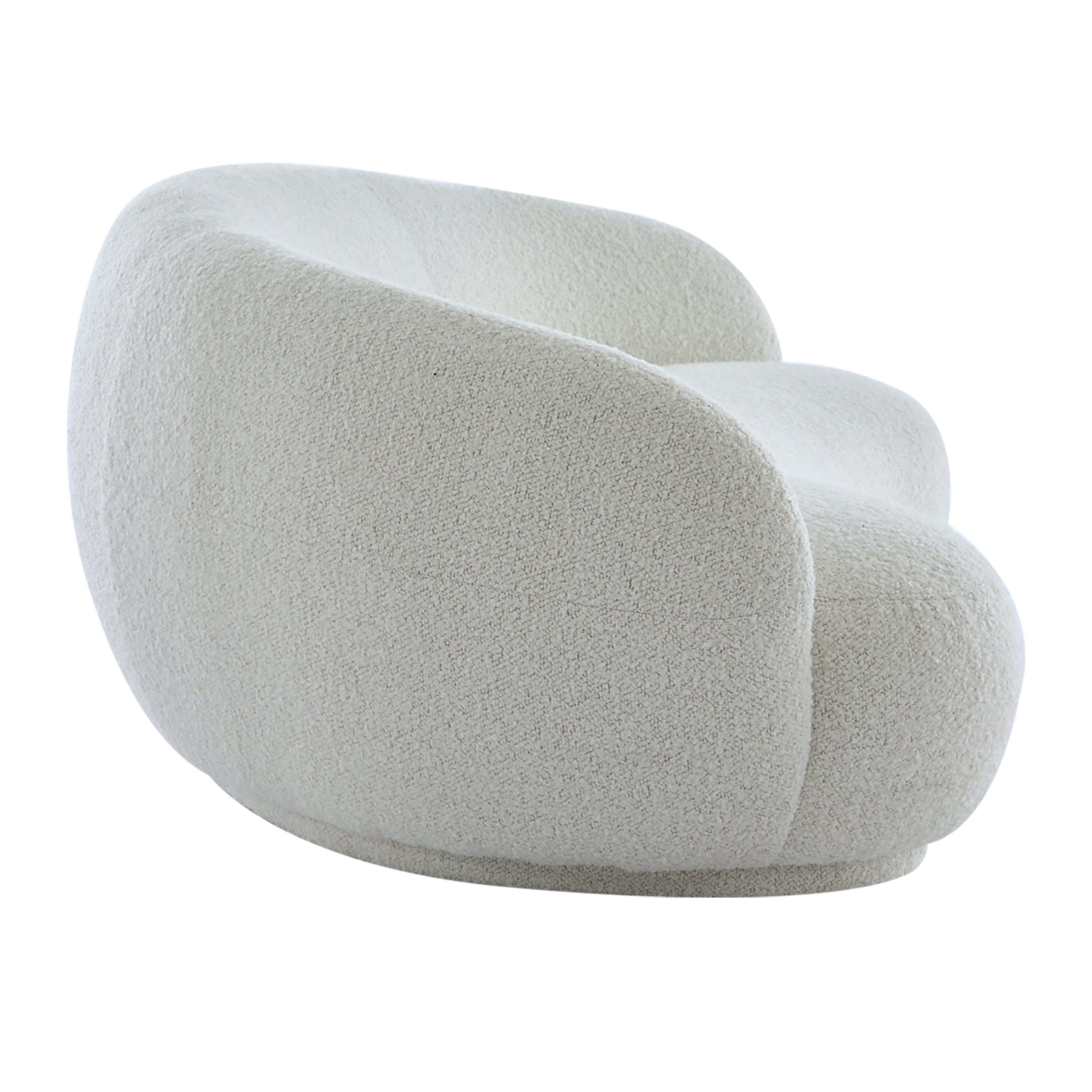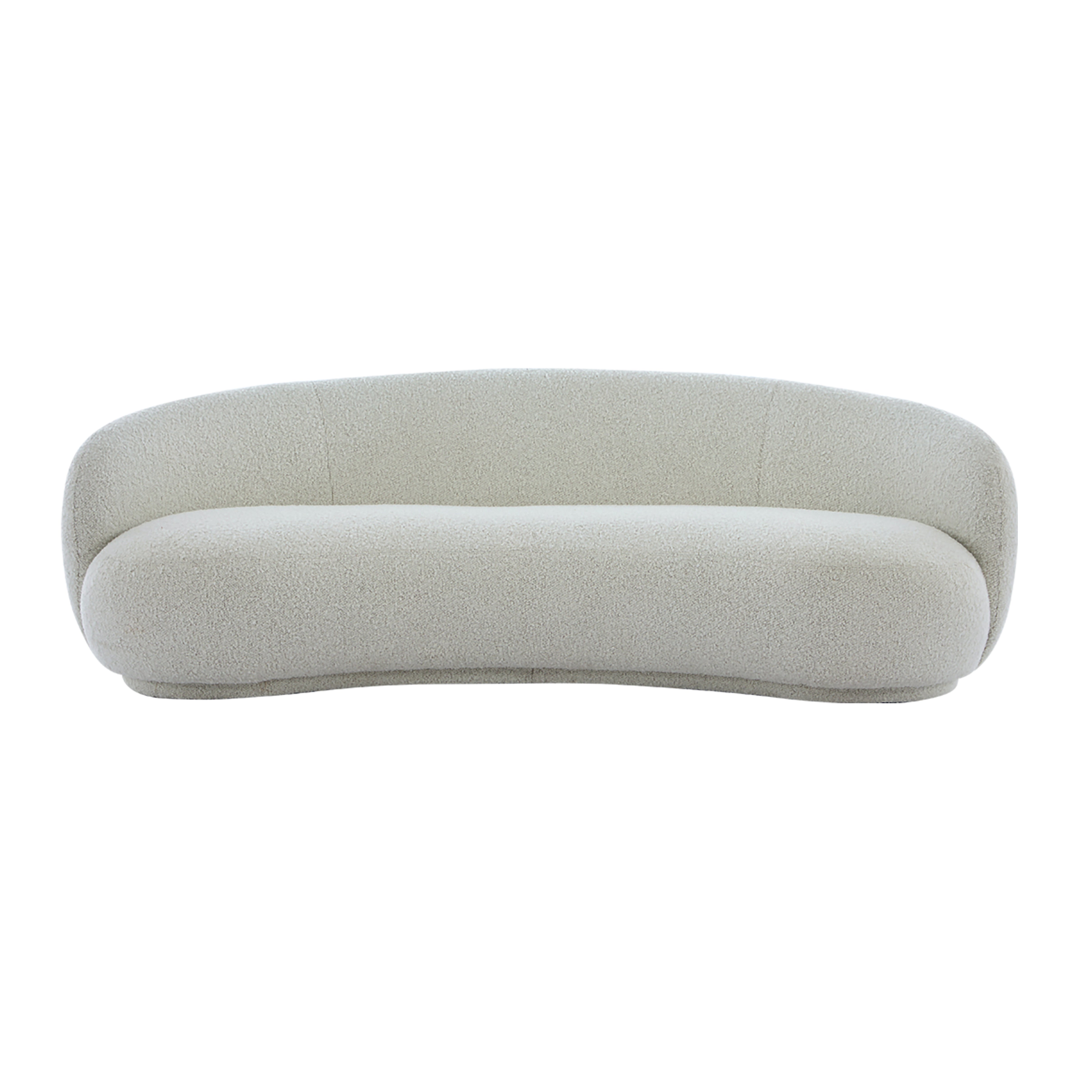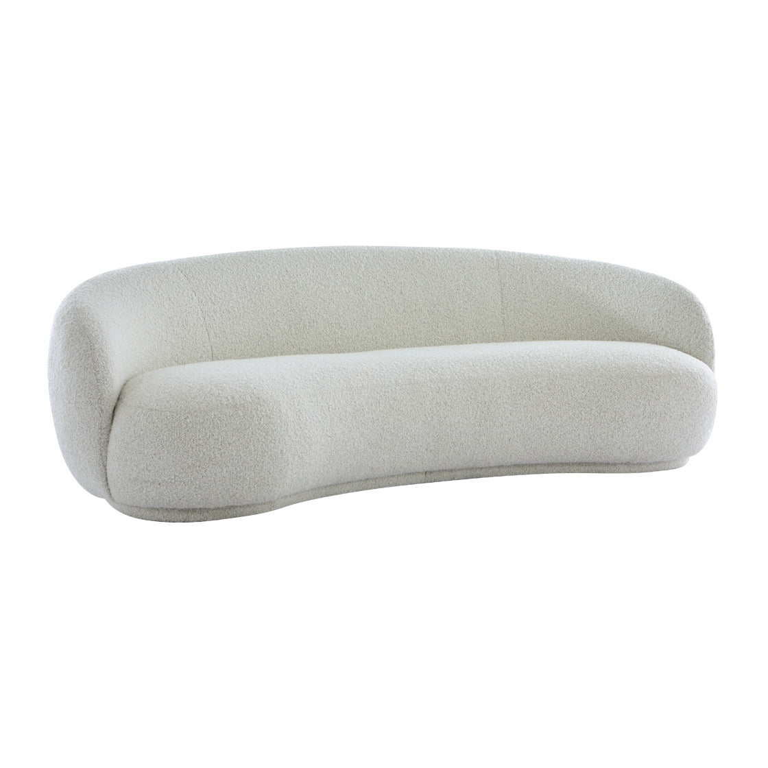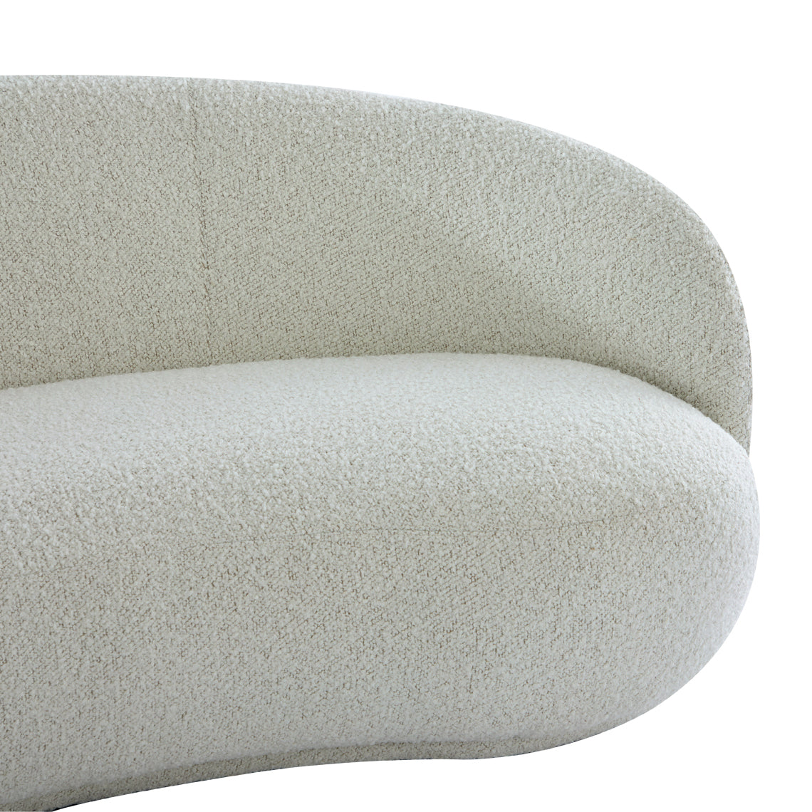 Crafted with a solid wood frame and supported by webbing, this sculptural sofa is upholstered in ultra soft Sherpa style bouclé fabric. Its curved silhouette and plush cushioning offer comfort and statement appeal. Fully assembled.