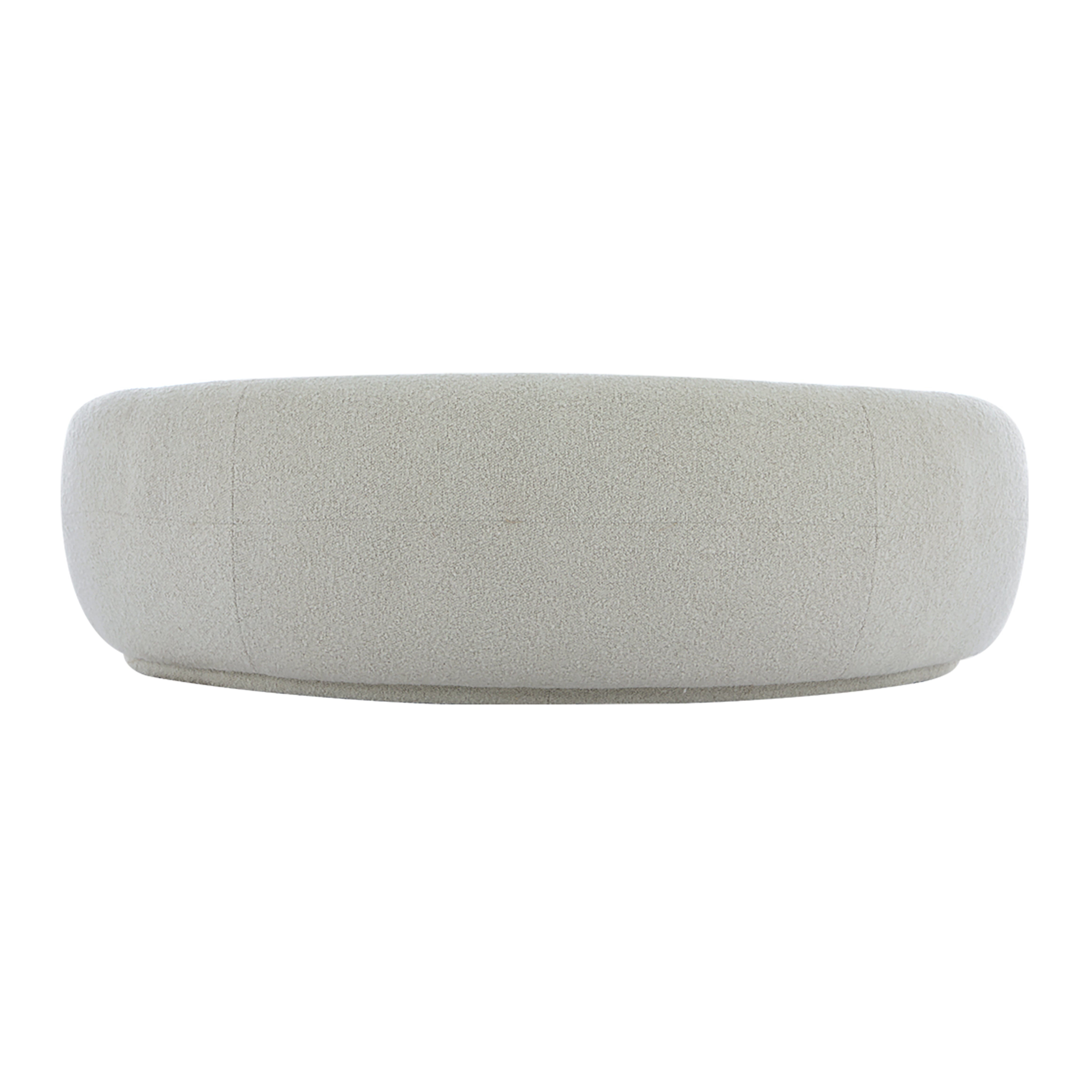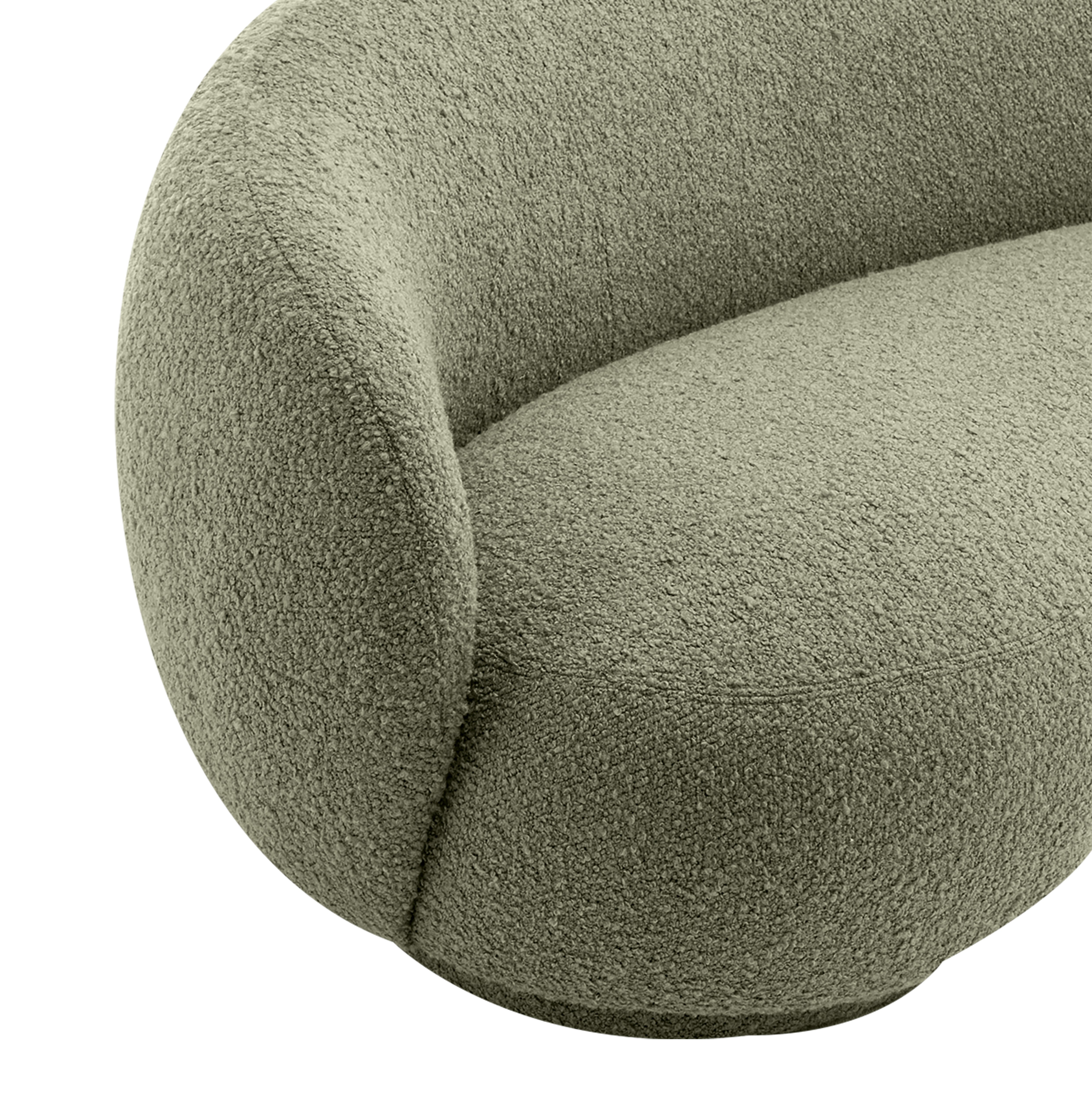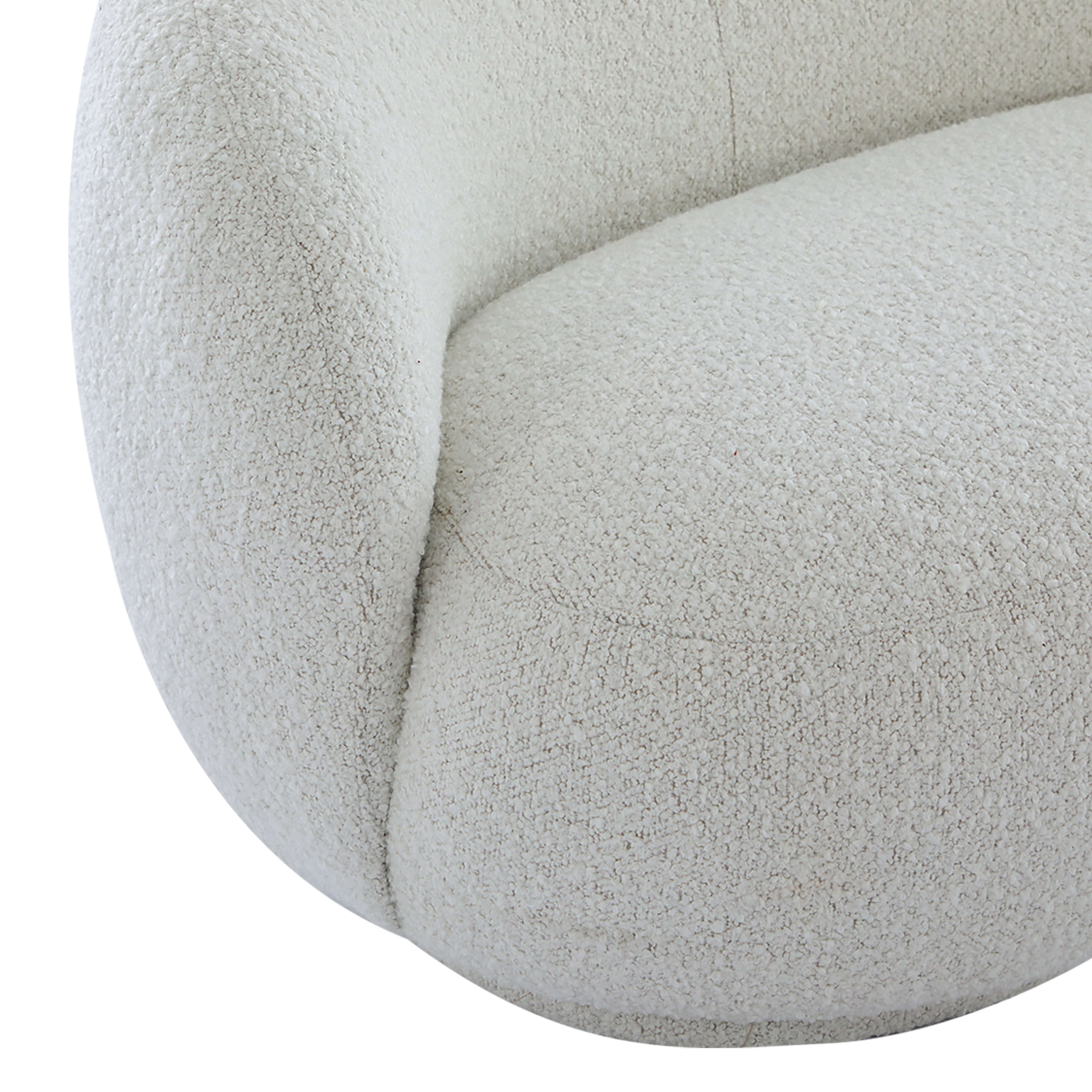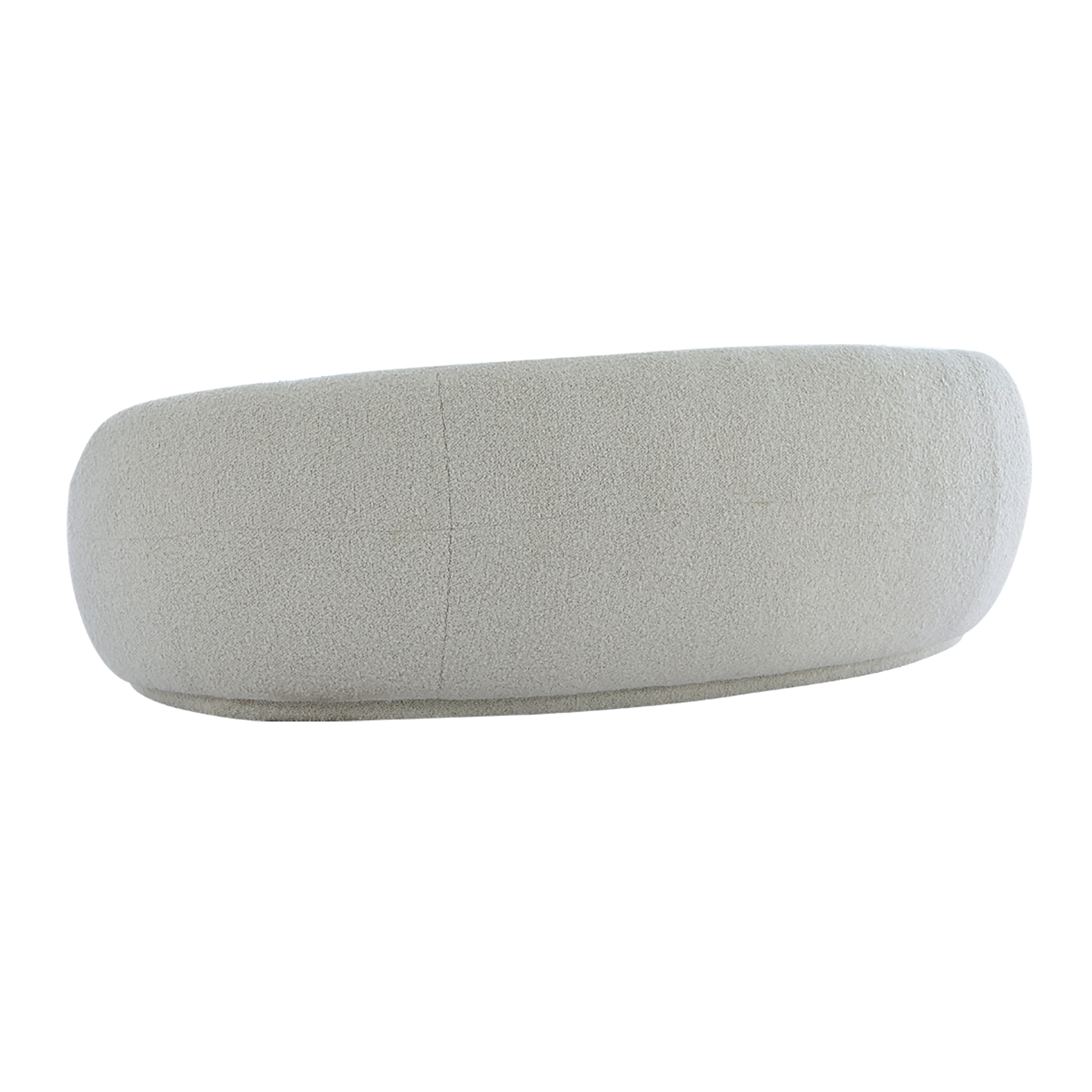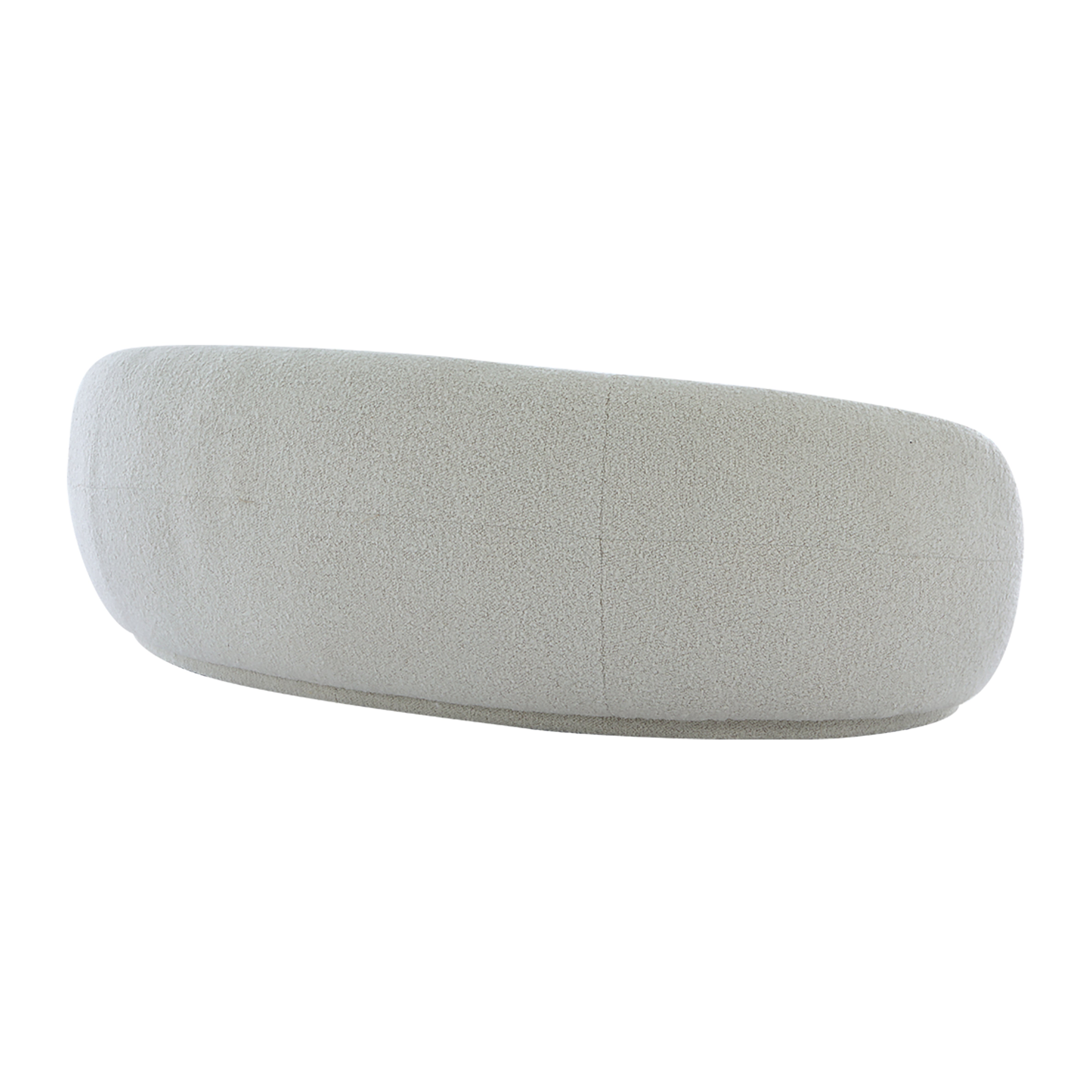 Crafted with a solid wood frame and supported by webbing, this sculptural sofa is upholstered in ultra soft Sherpa style bouclé fabric. Its curved silhouette and plush cushioning offer comfort and statement appeal. Fully assembled.