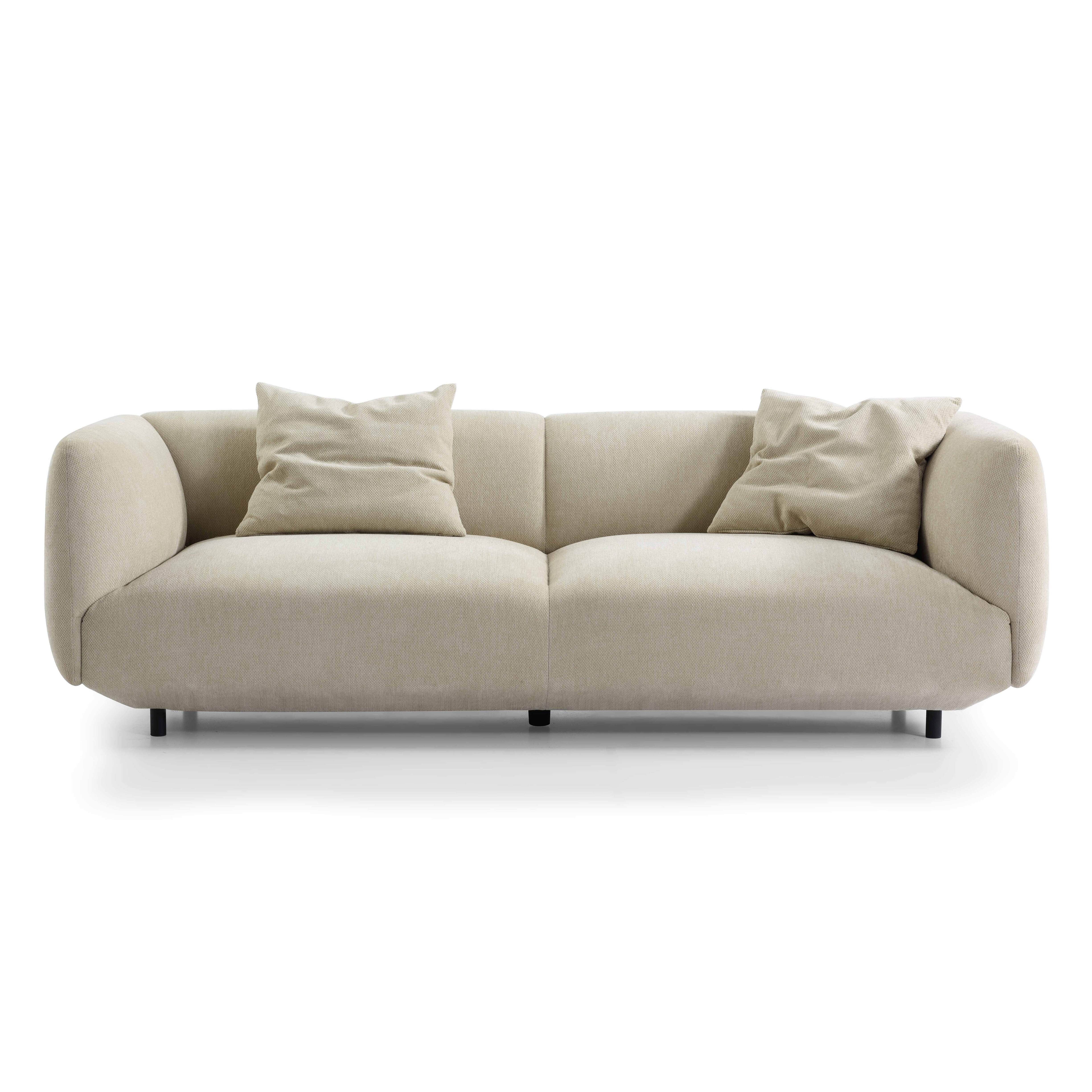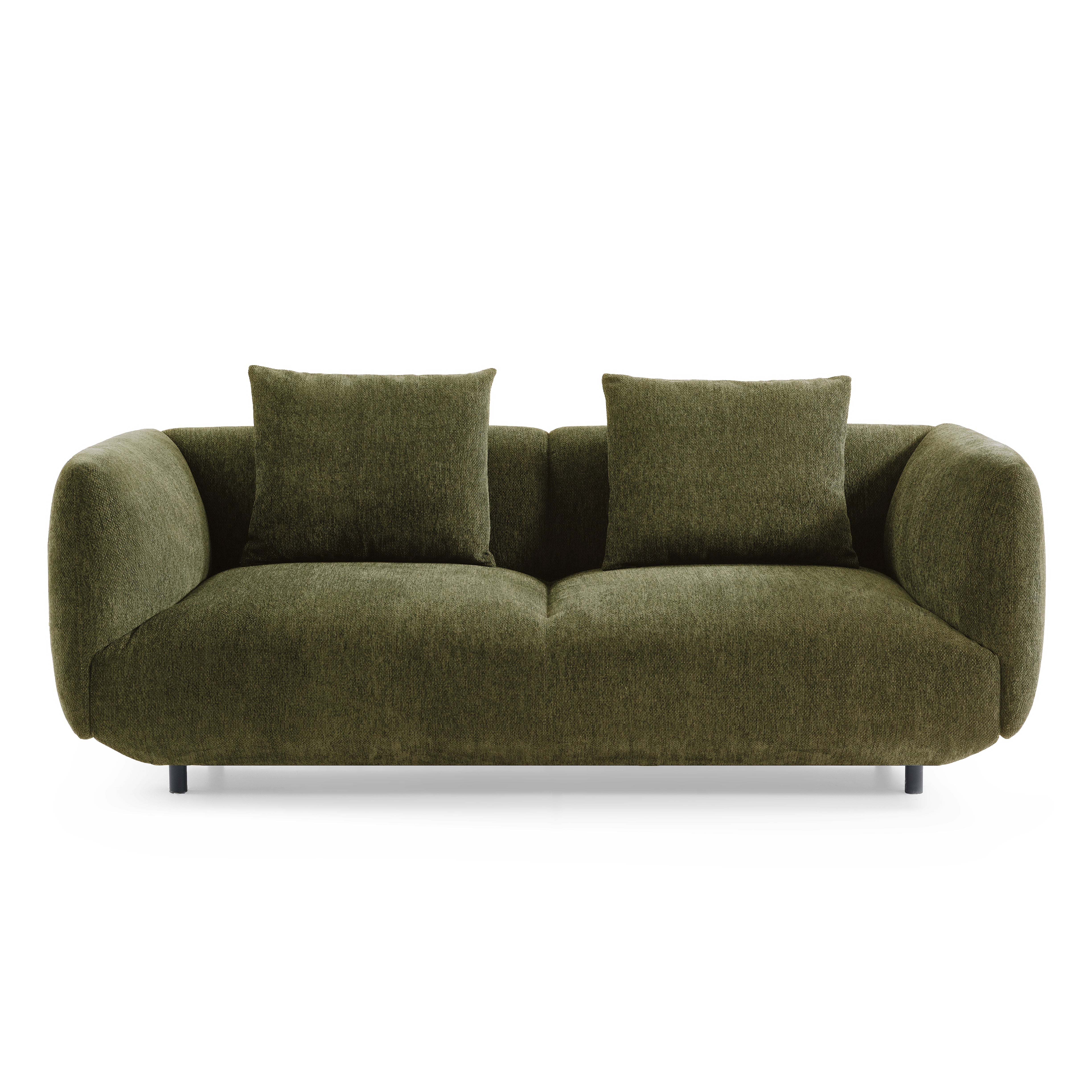 The Horizon Sofa 3 or 4 seater, embodies modern sophistication with its organic curves, plush silhouette, and deep seating designed for ultimate relaxation. Its gently rounded arms and sculptural form create a soft yet structured look, making it the perfect addition to contemporary and minimalist interiors. Upholstered in a luxuriously textured fabric, the Horizon Sofa offers a refined tactile experience, enhanced by two coordinating scatter cushions for added comfort and layering. Available in Rich Green, Deep Navy and Soft Natural for versatile styling.
