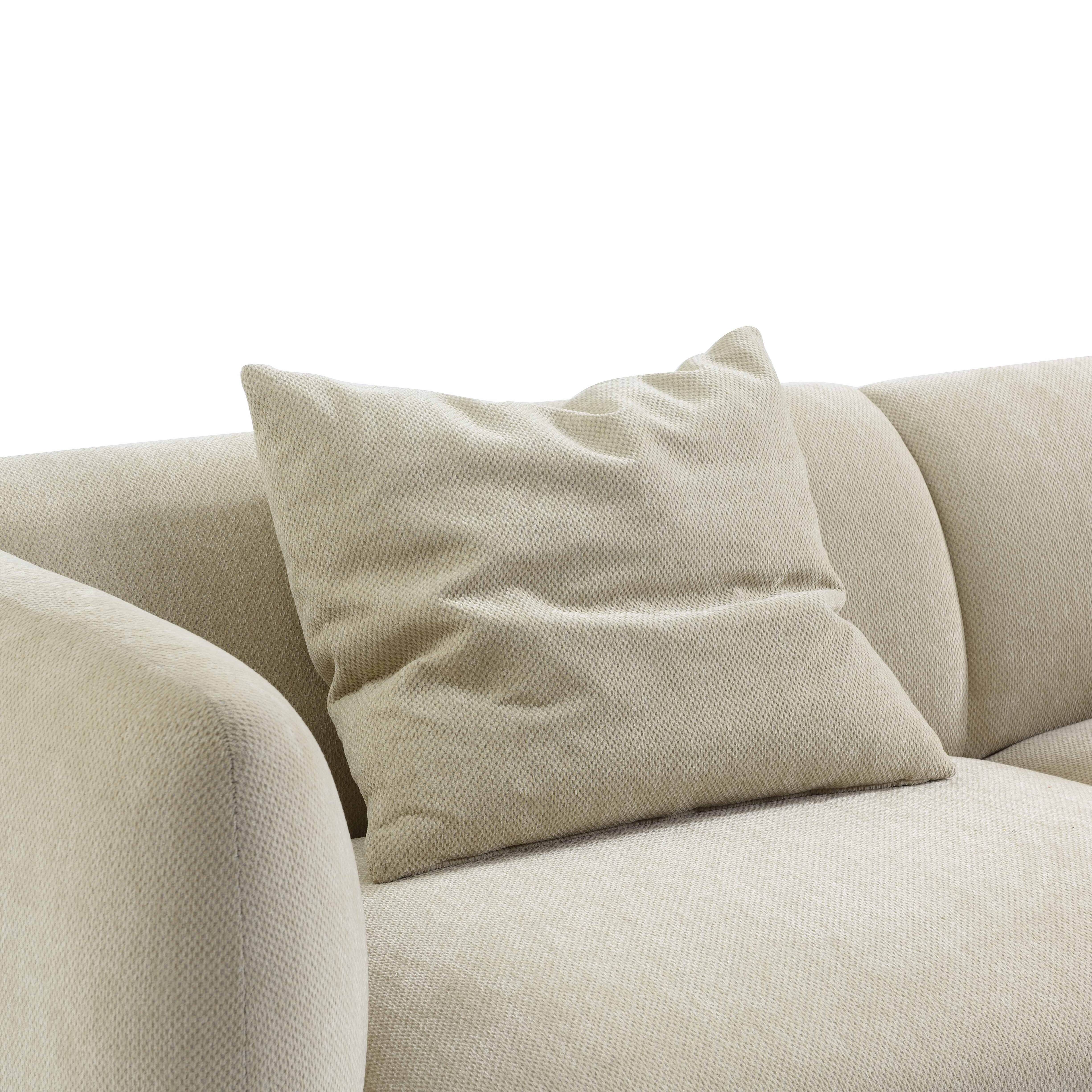 Constructed with solid pine wood frame with plywood and FSC certified. Features high density foam and with a Dacron wrap seat and back fixed cushions. Supported by S-springs and webbing, and upholstered in a soft chenille style fabric. Legs to be assembled.