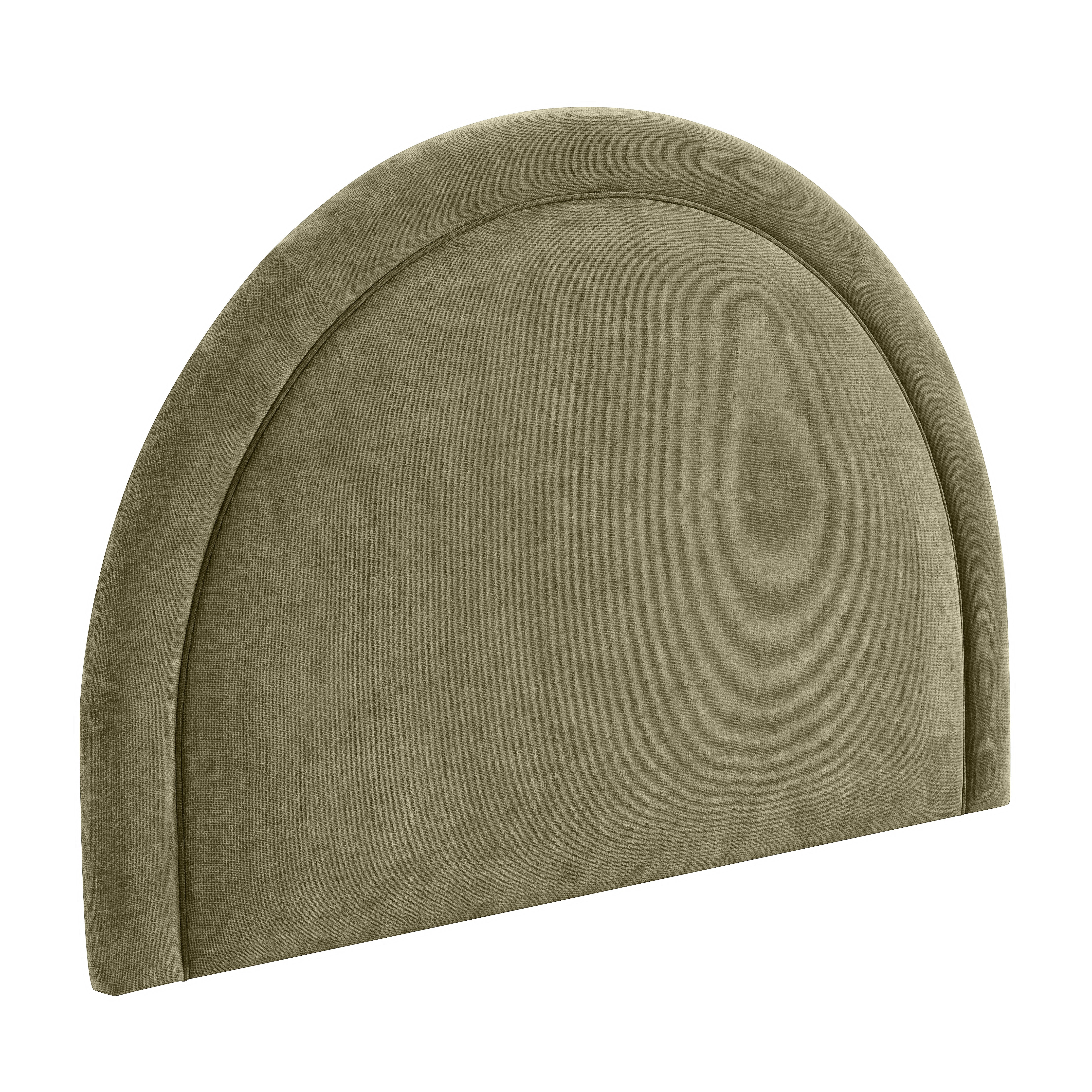 Effortless sophistication with its sculptural arch and plush chenille fabric. Designed for comfort and style, its padded structure creates a soft, inviting backdrop for relaxation. Available in Queen and King sizes, it comes in rich caramel, muted sage, and timeless taupe. Perfect for modern or classic interiors. A refined statement piece that elevates any bedroom.