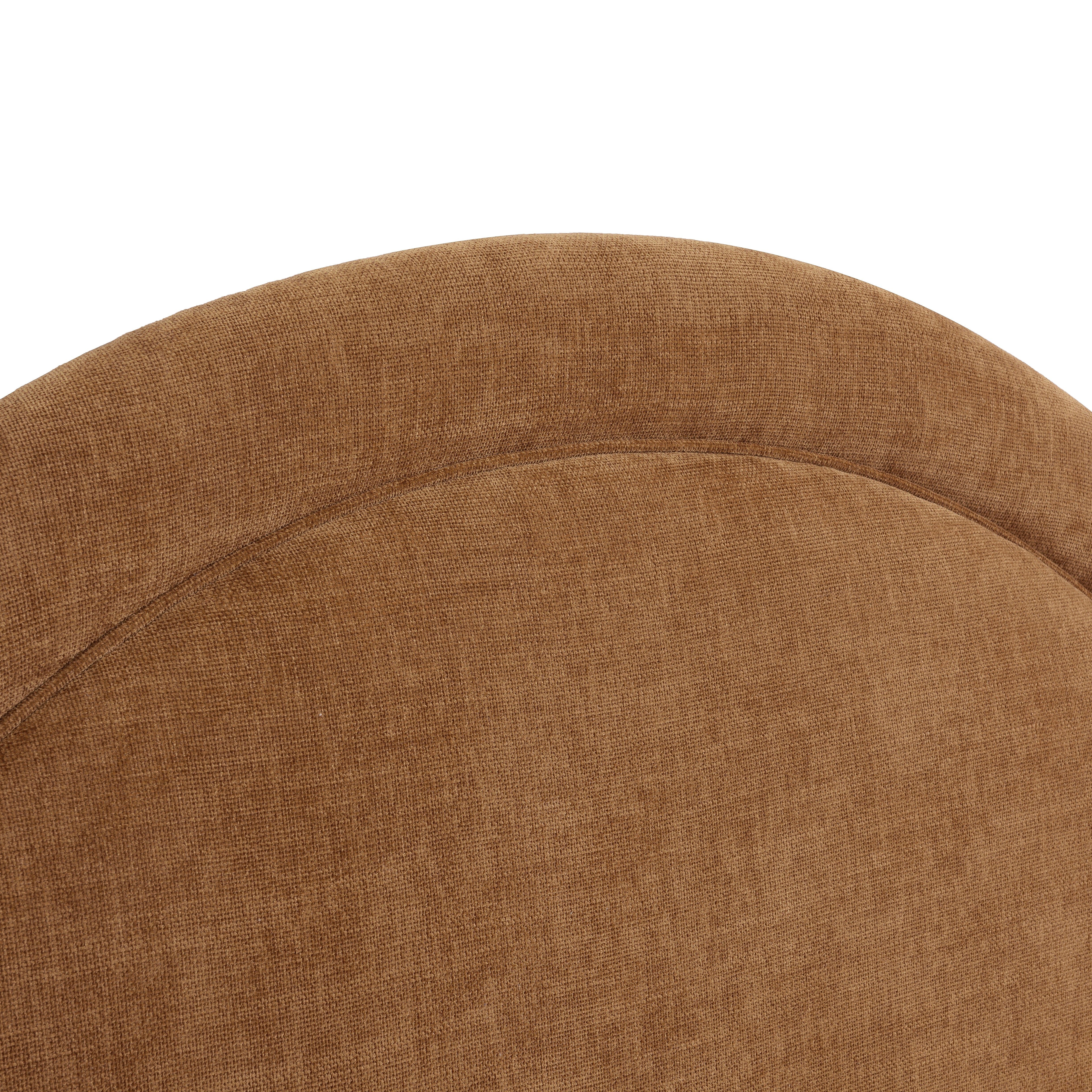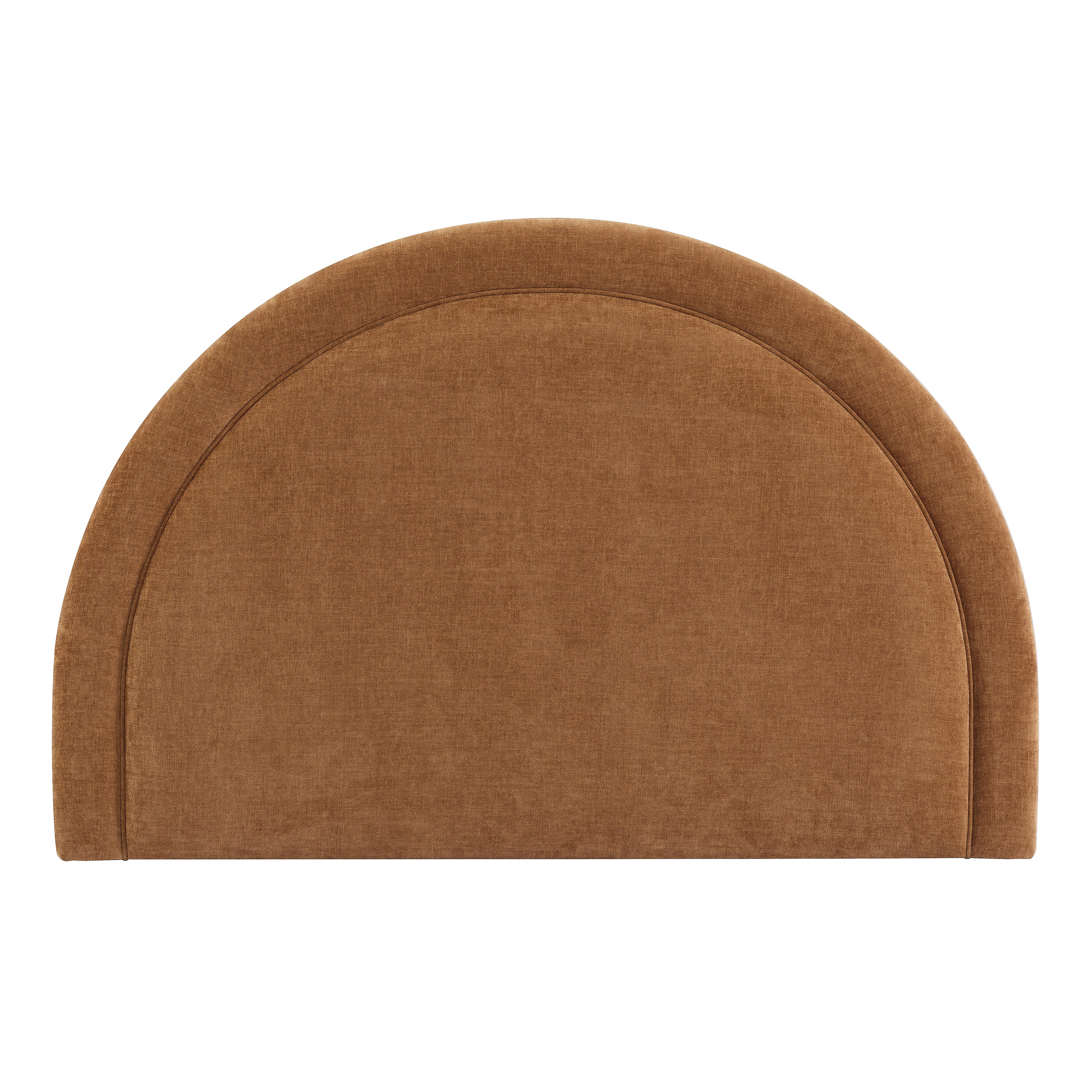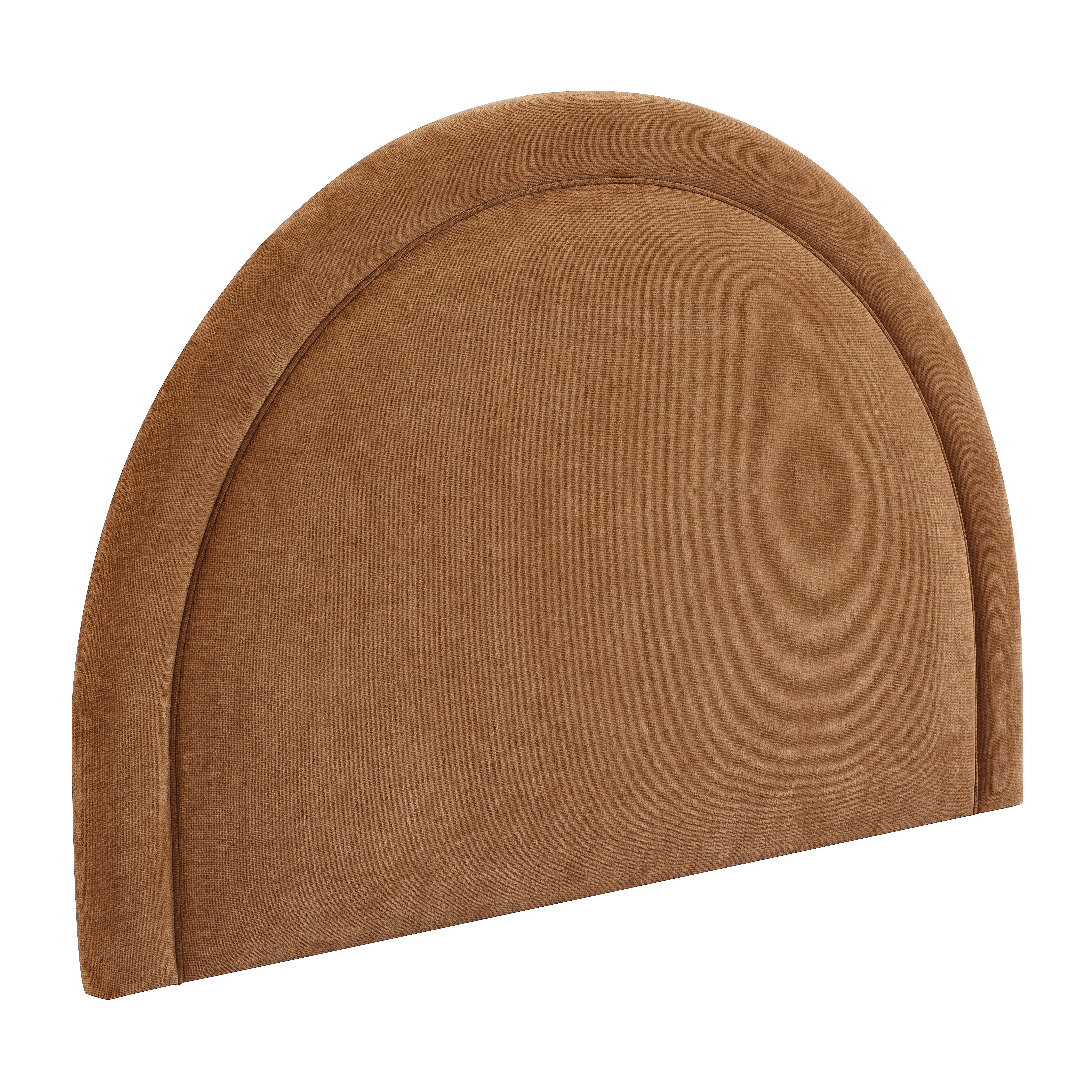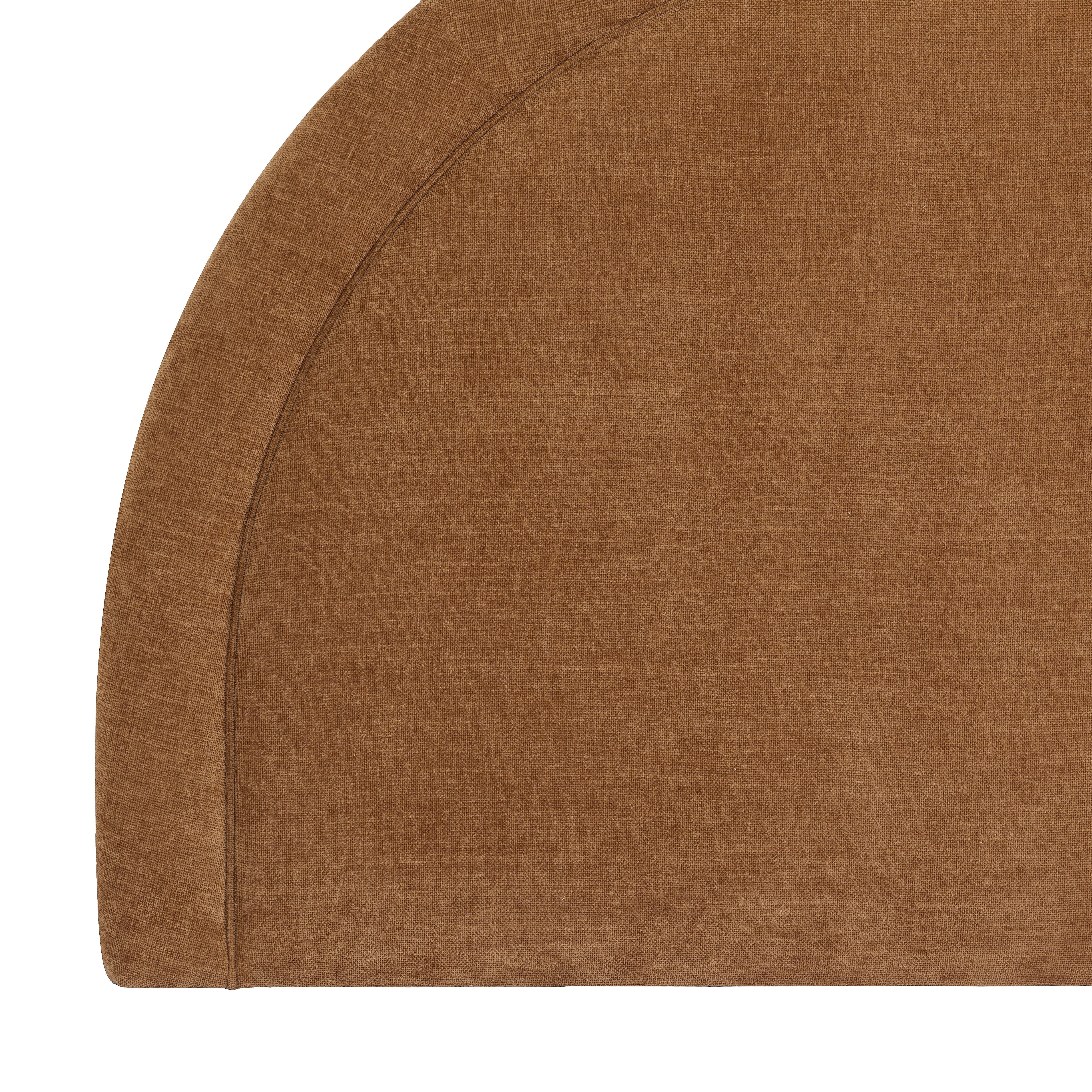 Effortless sophistication with its sculptural arch and plush chenille fabric. Designed for comfort and style, its padded structure creates a soft, inviting backdrop for relaxation. Available in Queen and King sizes, it comes in rich caramel, muted sage, and timeless taupe.  Perfect for modern or classic interiors. A refined statement piece that elevates any bedroom.