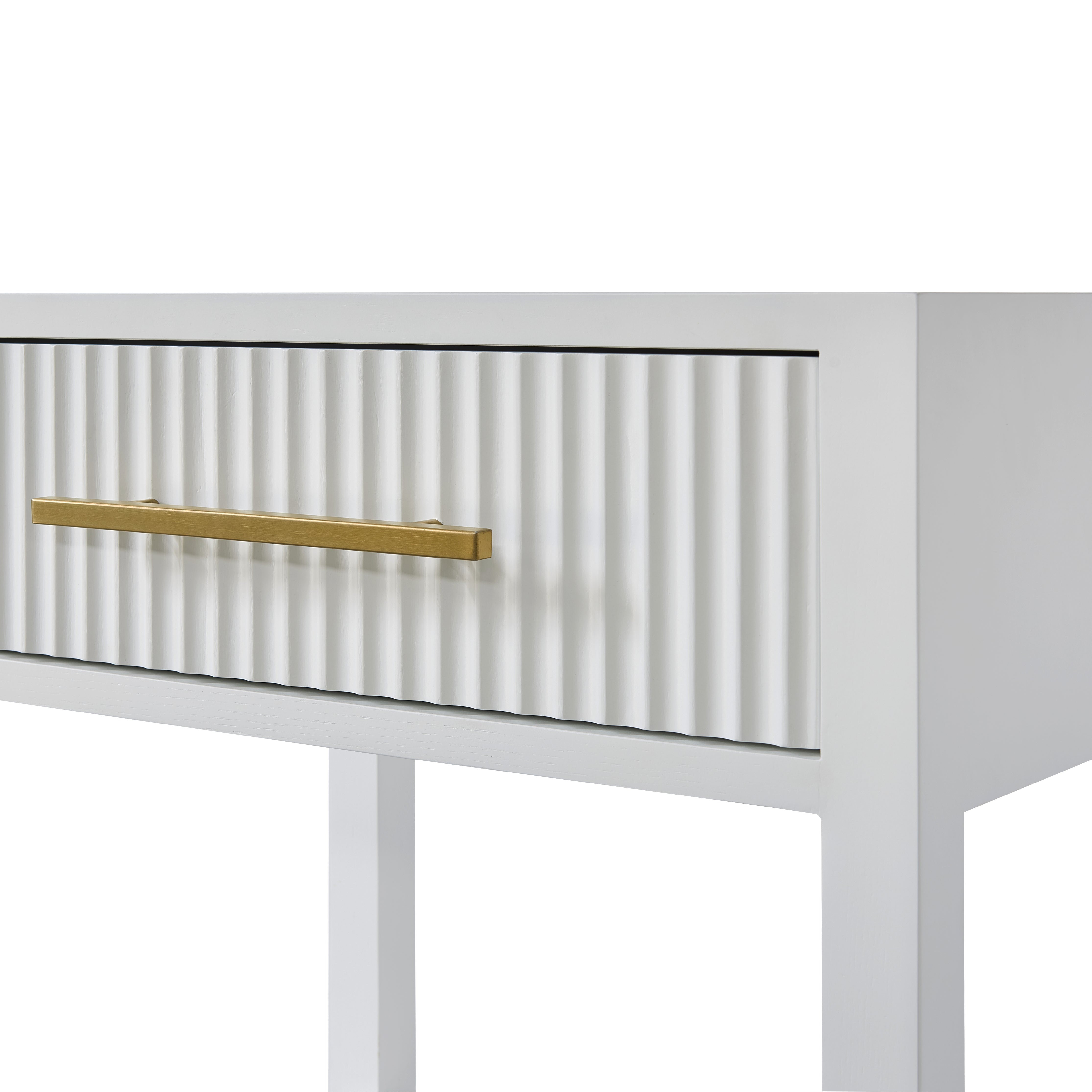 The Mayfair 1 -Drawer Bedside Table with a shelve, blends contemporary elegance with coastal appeal, featuring an ash timber veneer finish and a fluted drawer design for added texture. Sleek brass handles contrast beautifully, while smooth metal runners ensure effortless functionality. Its three spacious drawers provide ample storage, making it a practical yet sophisticated addition to any bedroom. Available in black or white and also offered in a 1 or 3 drawer bedside, 6-drawer chest, or buffet to complete the collection.