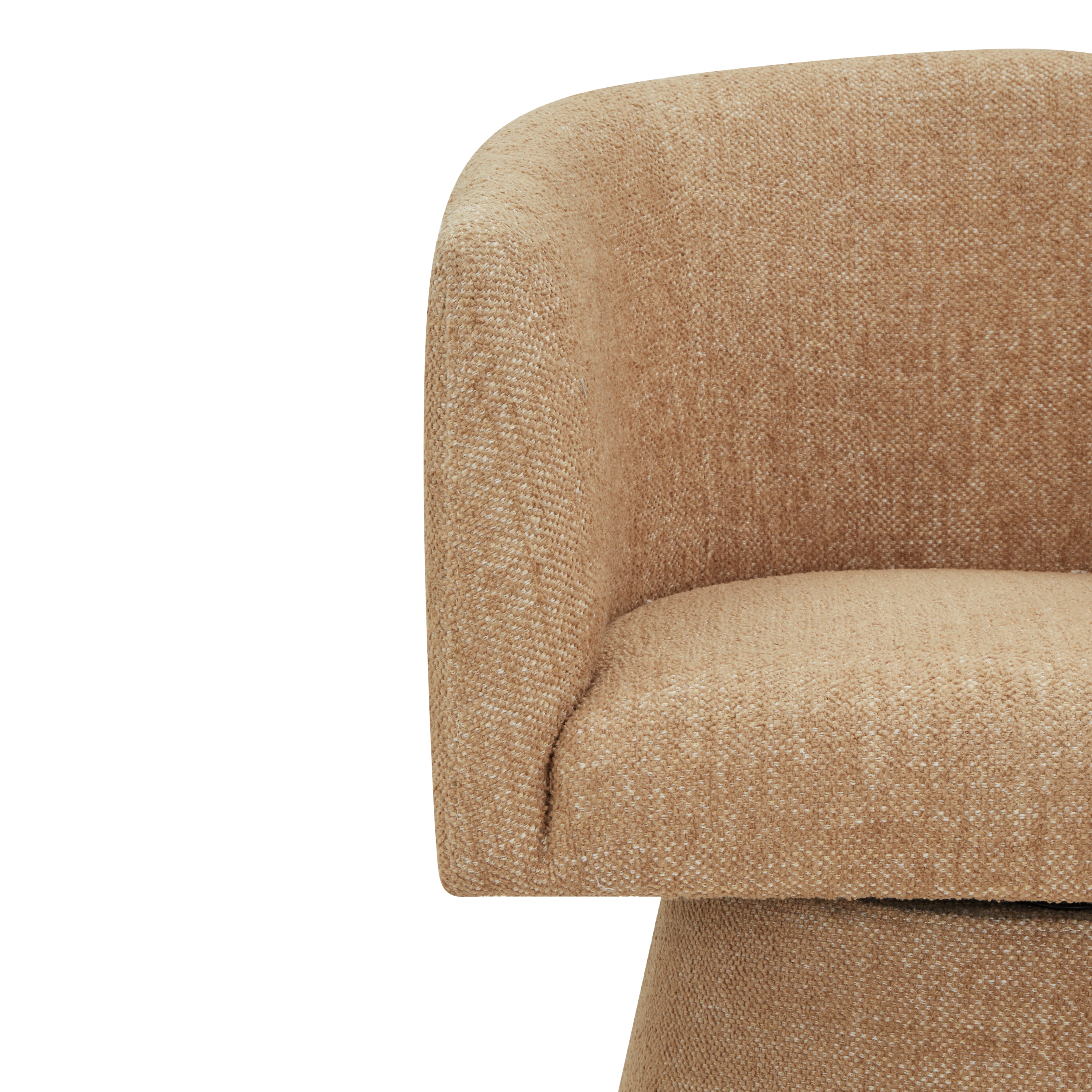 The Libby Swivel Dining Chair blends sculptural elegance with everyday comfort, featuring a curved silhouette, ergonomic backrest, and a smooth swivel function. Upholstered in textured fabric or velvet with a mohair-like feel, it offers a soft, luxurious touch. Available in Caramel, Ivory, and Sage Velvet Mohair, this versatile piece elevates any dining space or perfect office chair