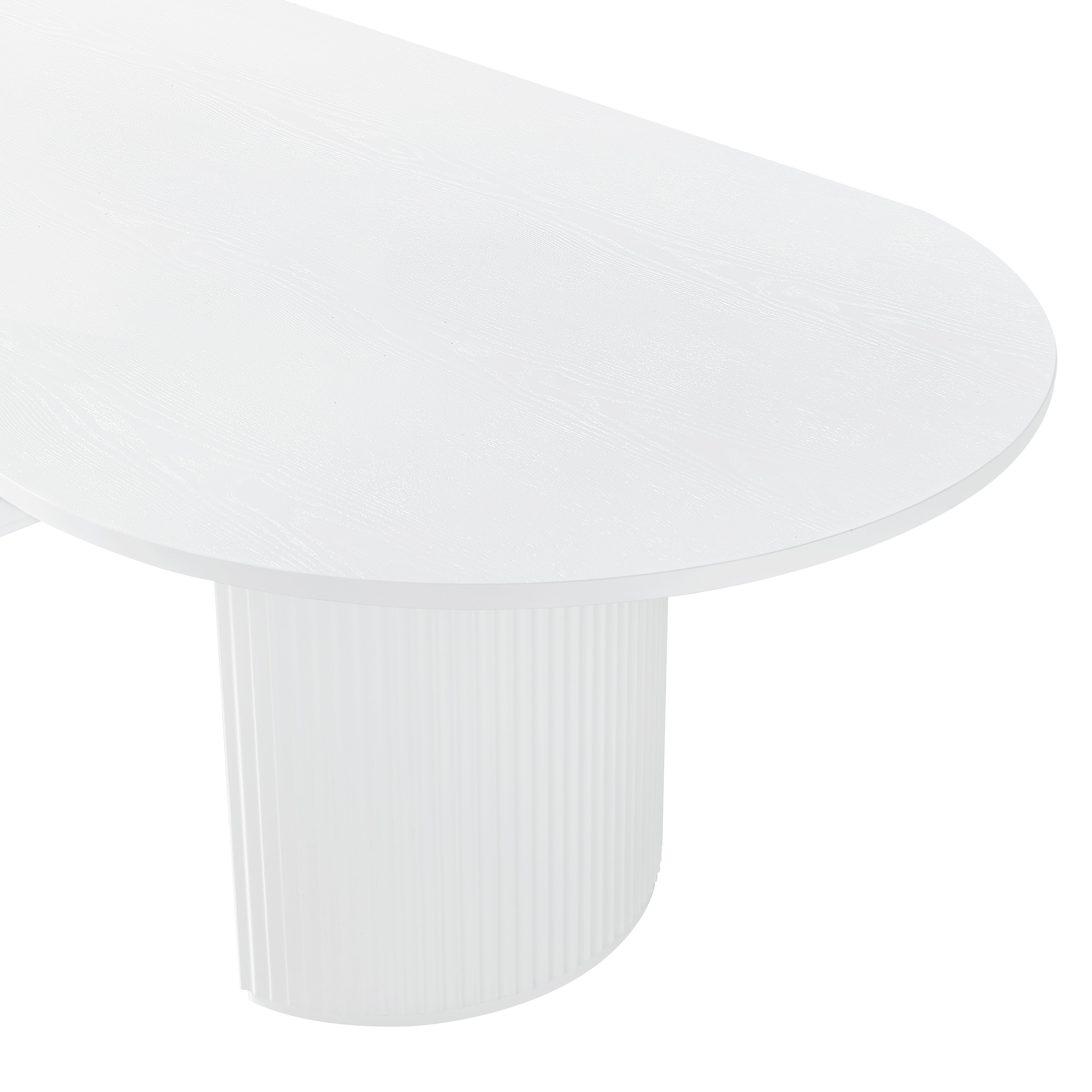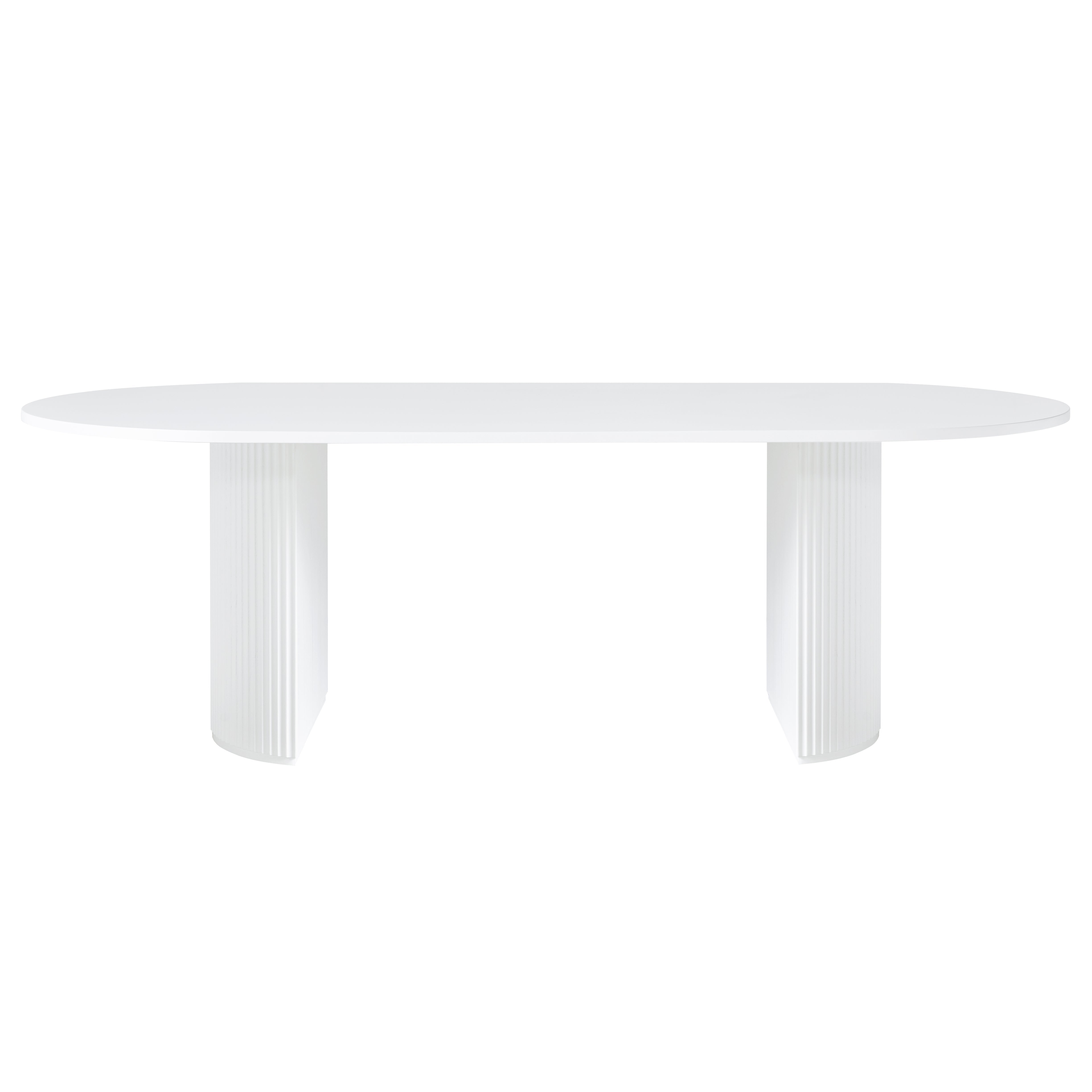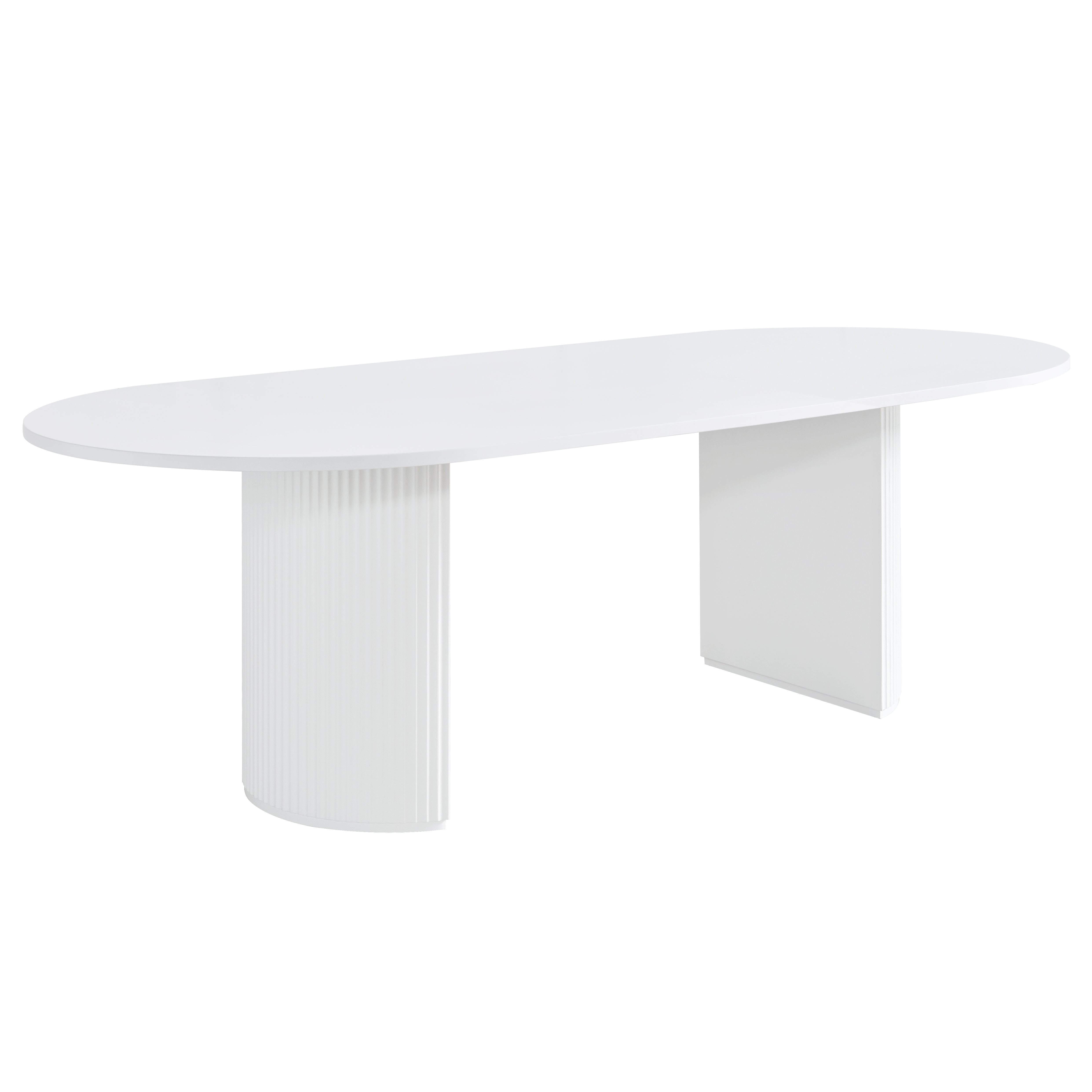 The Ripple Dining Table is a refined statement piece, blending sculptural design with timeless sophistication. Crafted with an ash timber veneer finish, it features a striking fluted base that adds depth and texture. Available in both round and oval configurations in classic white or bold black, it brings effortless elegance to any dining setting. Designed to be both visually striking and functional, the Ripple Dining Table is a versatile centrepiece that complements modern interiors with its clean lines and sculptural presence. Available in classic white or bold black, it comes in two versatile sizes: a 150cm round or a 240cm oval configuration.