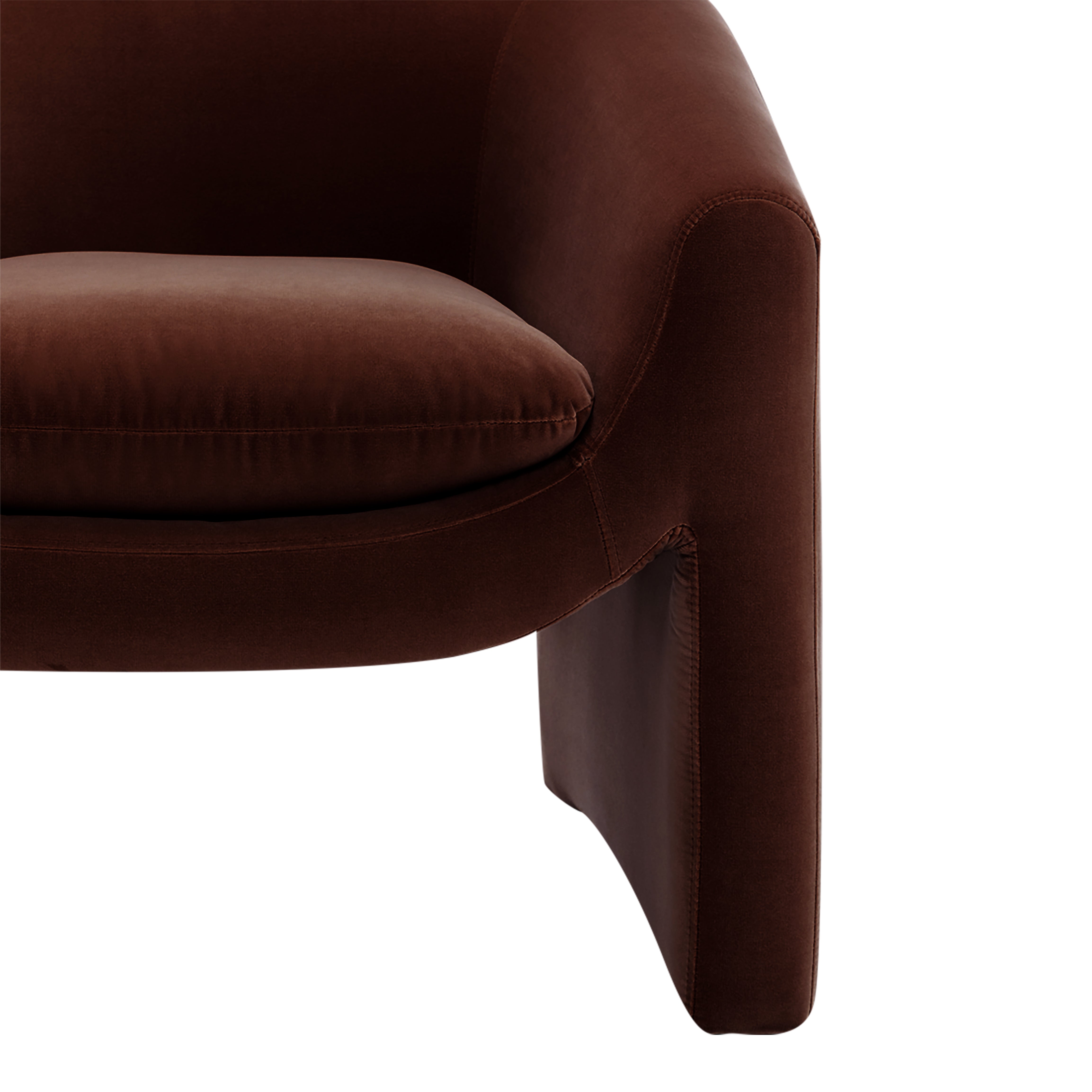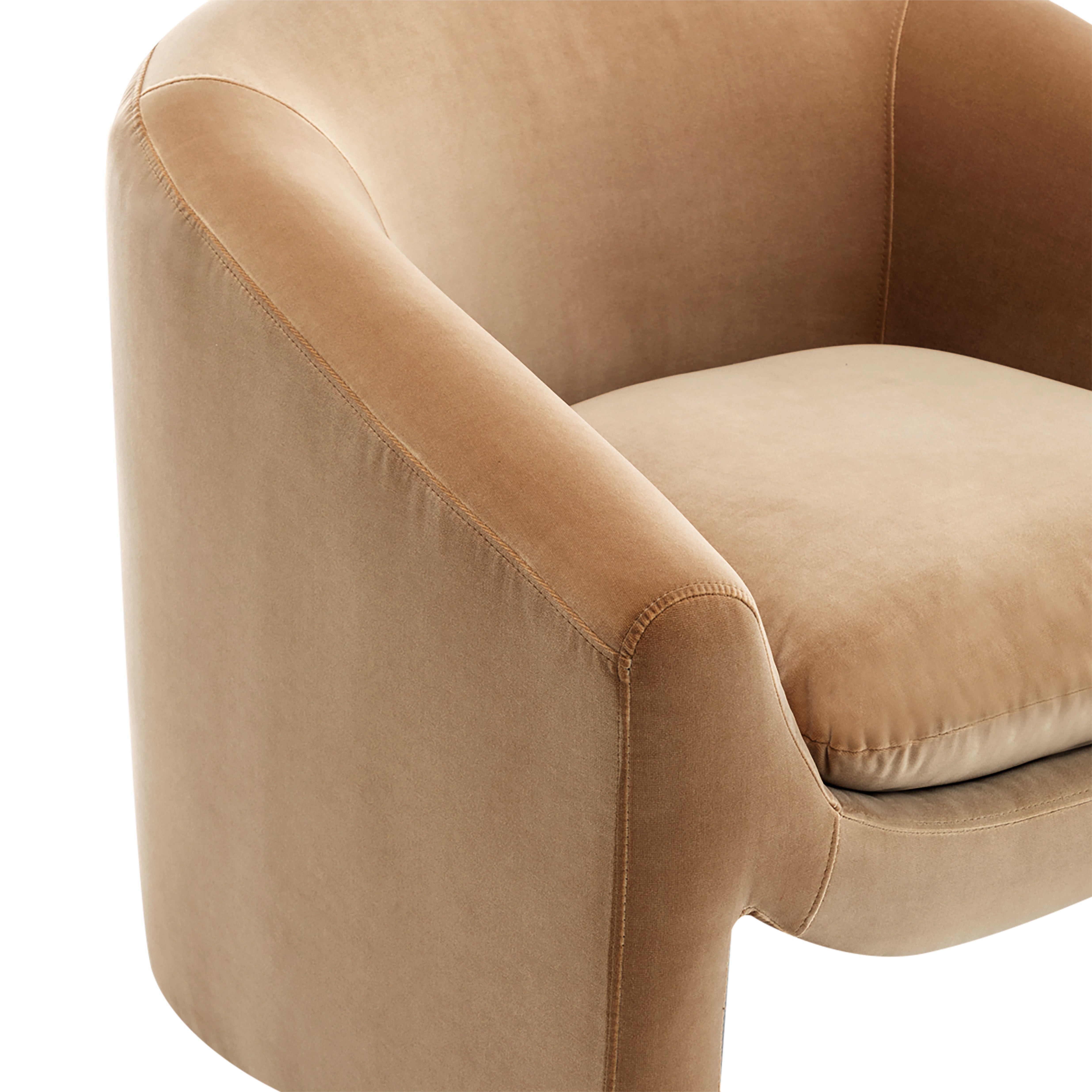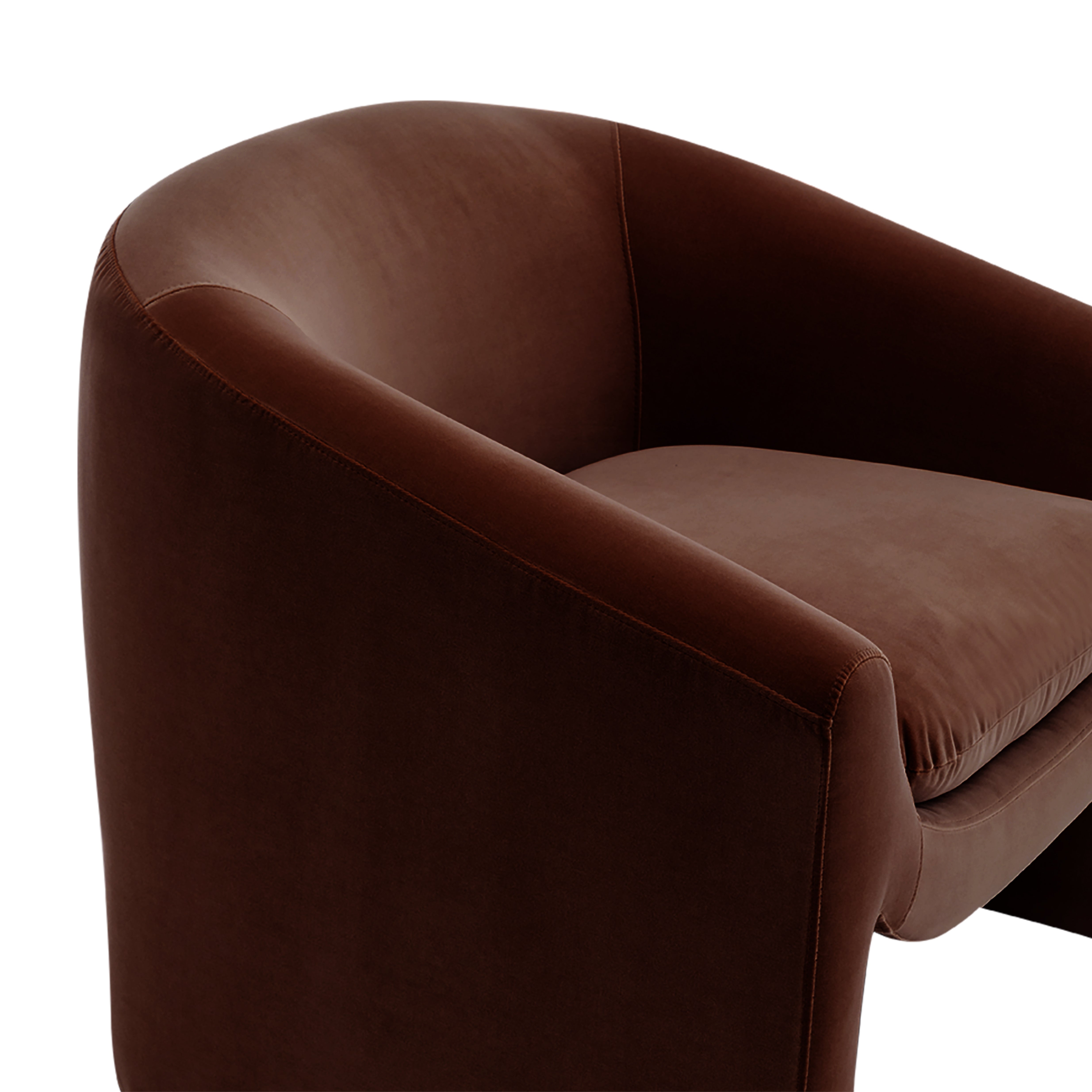 A bold yet inviting statement, the Ava Occasional Chair features a sculptural silhouette, curved armrests, and a cut-out base. Designed for living rooms, bedrooms, or reading nooks, it blends comfort with modern elegance. Available in a Cotton like Velvet Chocolate, Ochre and green or a Natural chenille textured fabric. Perfect for contemporary and minimalist interiors.