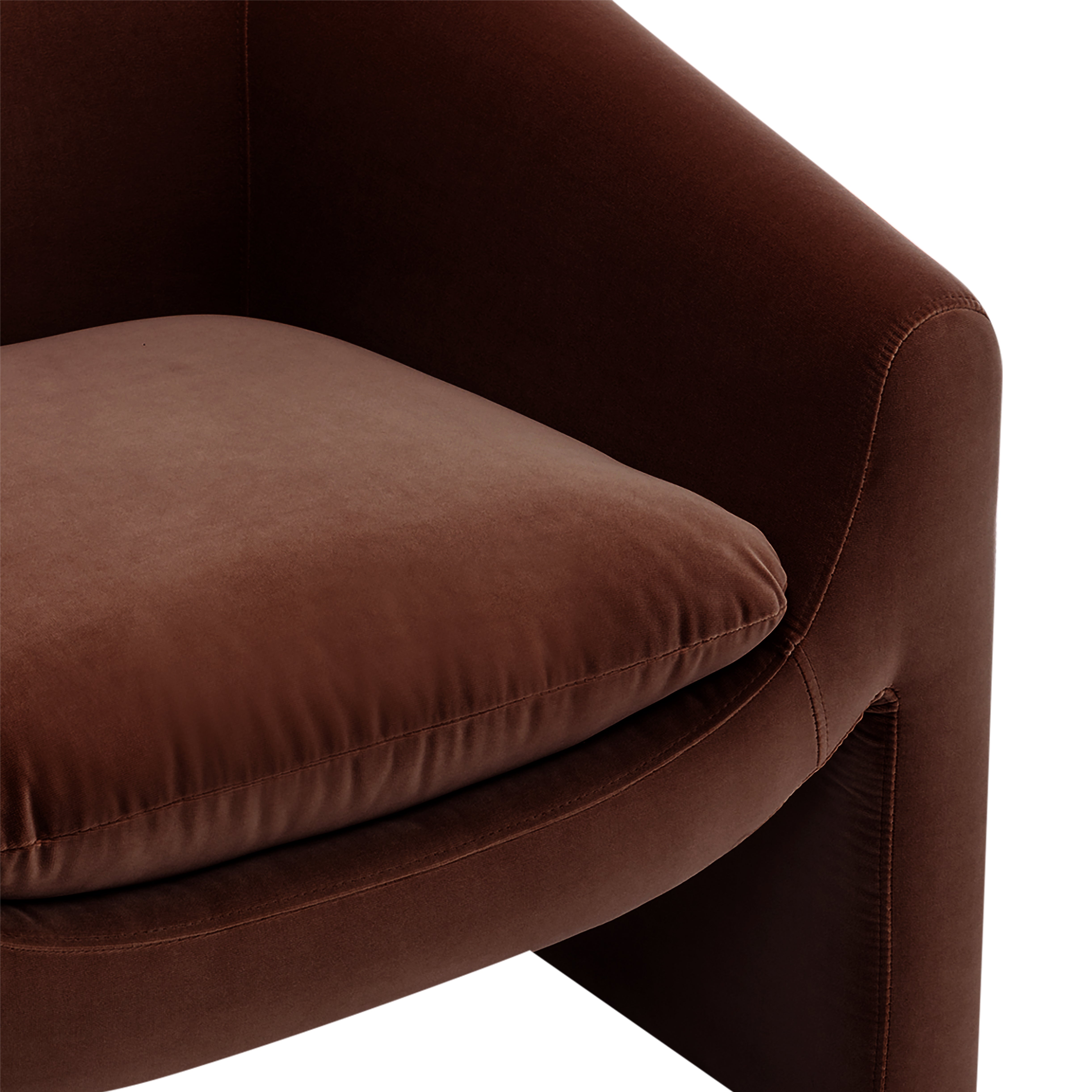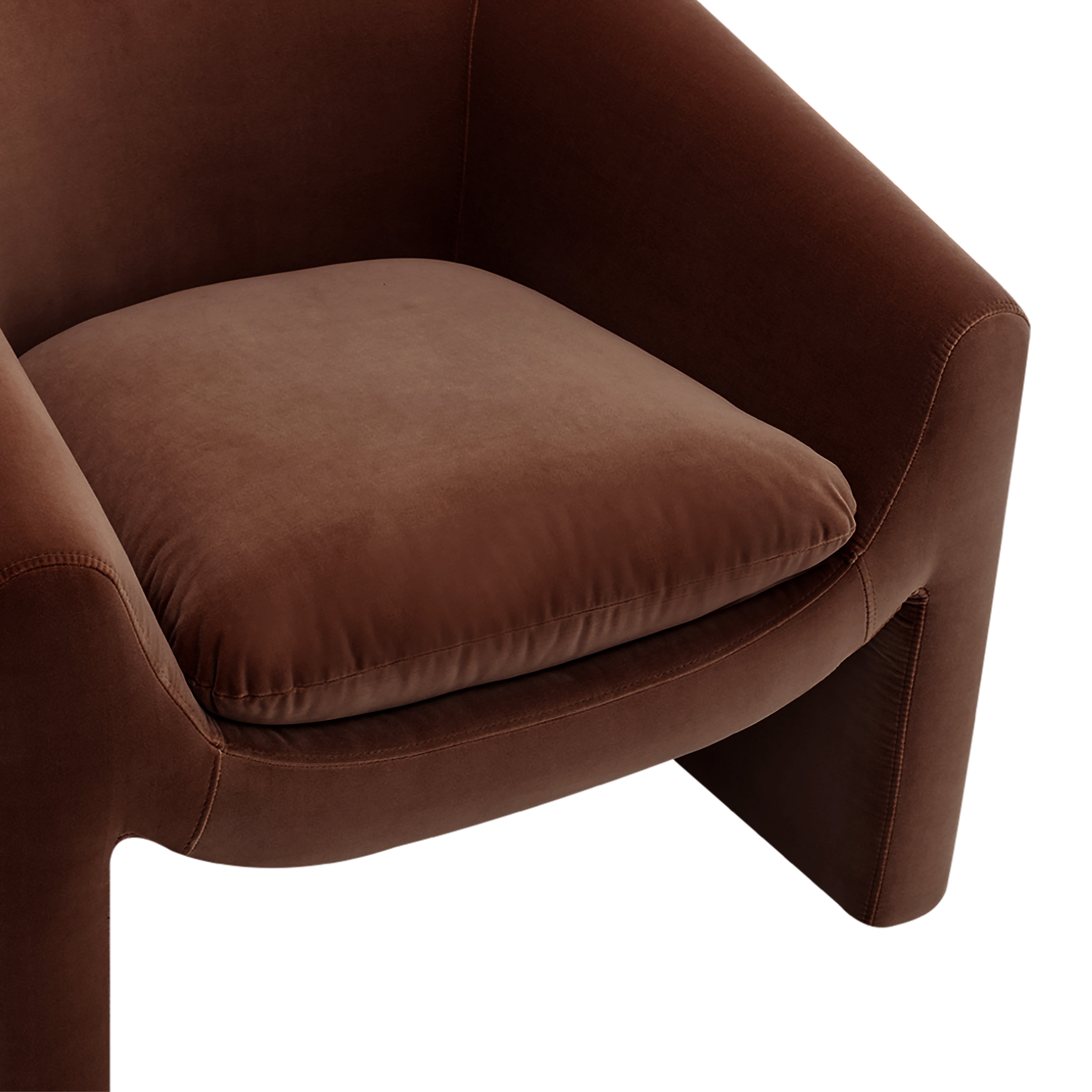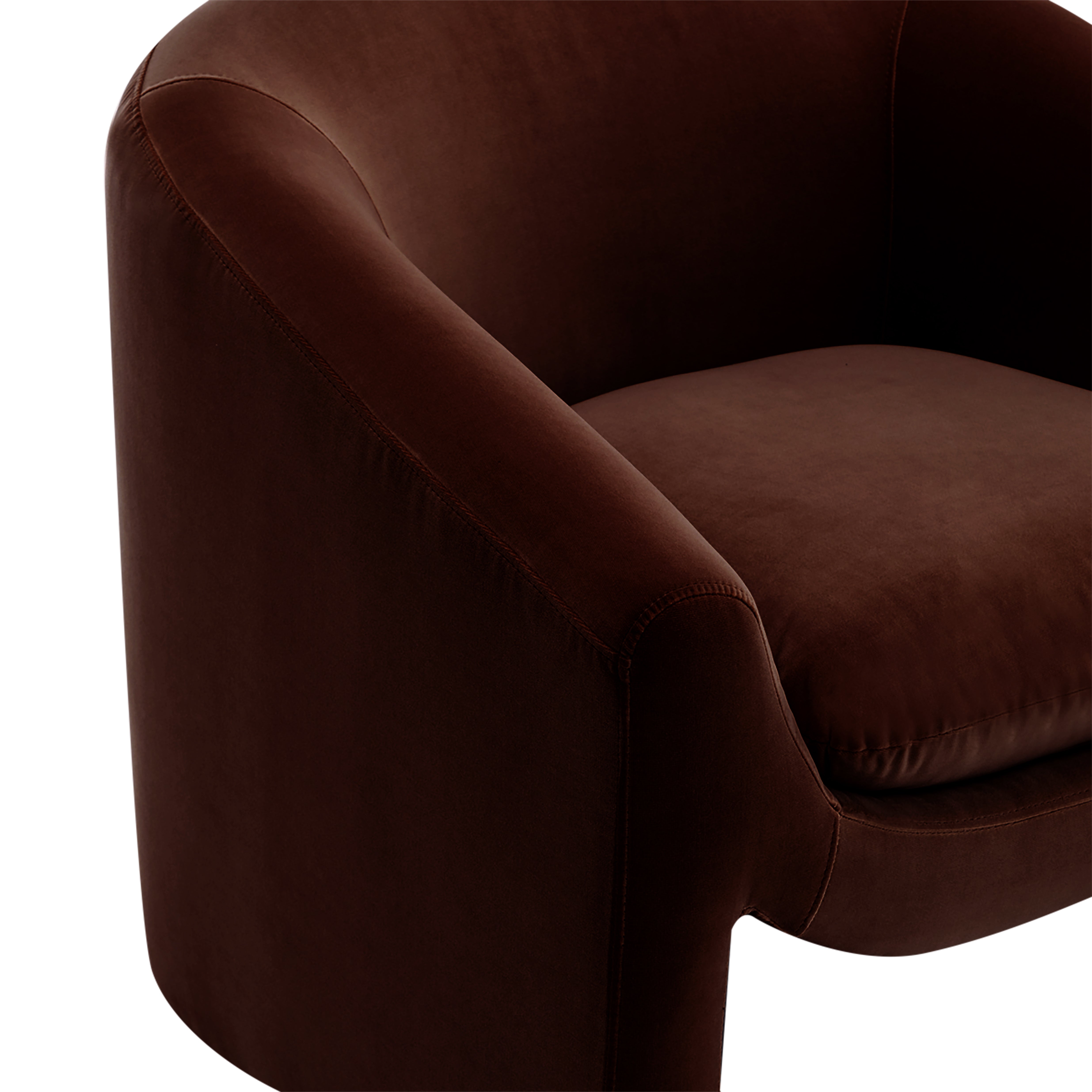 A bold yet inviting statement, the Ava Occasional Chair features a sculptural silhouette, curved armrests, and a cut-out base. Designed for living rooms, bedrooms, or reading nooks, it blends comfort with modern elegance. Available in a Cotton like Velvet Chocolate, Ochre and green or a Natural chenille textured fabric. Perfect for contemporary and minimalist interiors.