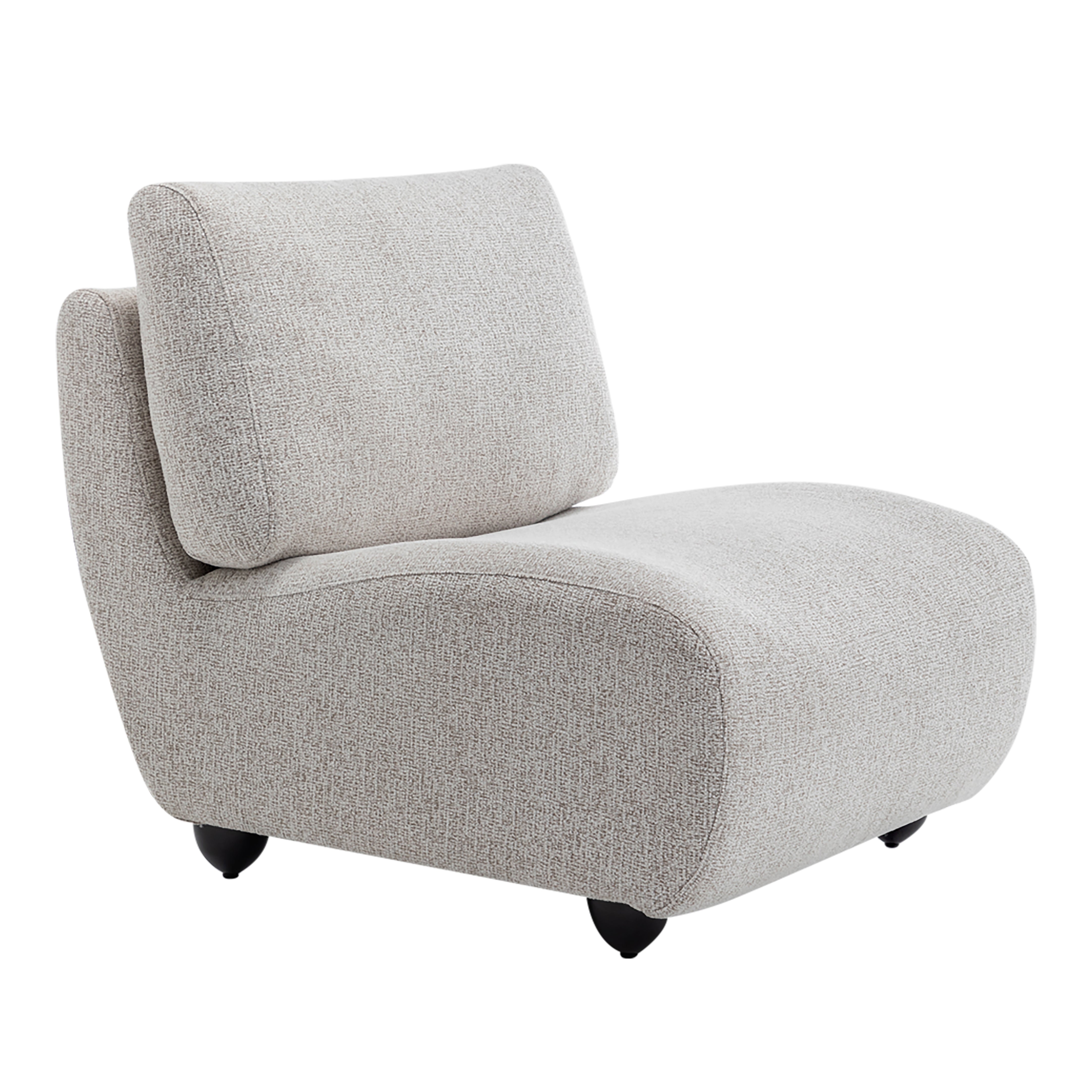 The Lotus Occasional Chair balances comfort and style with sculptural curves, plush chenille upholstery, and rounded black timber feet for a relaxed yet refined look. Choose from: