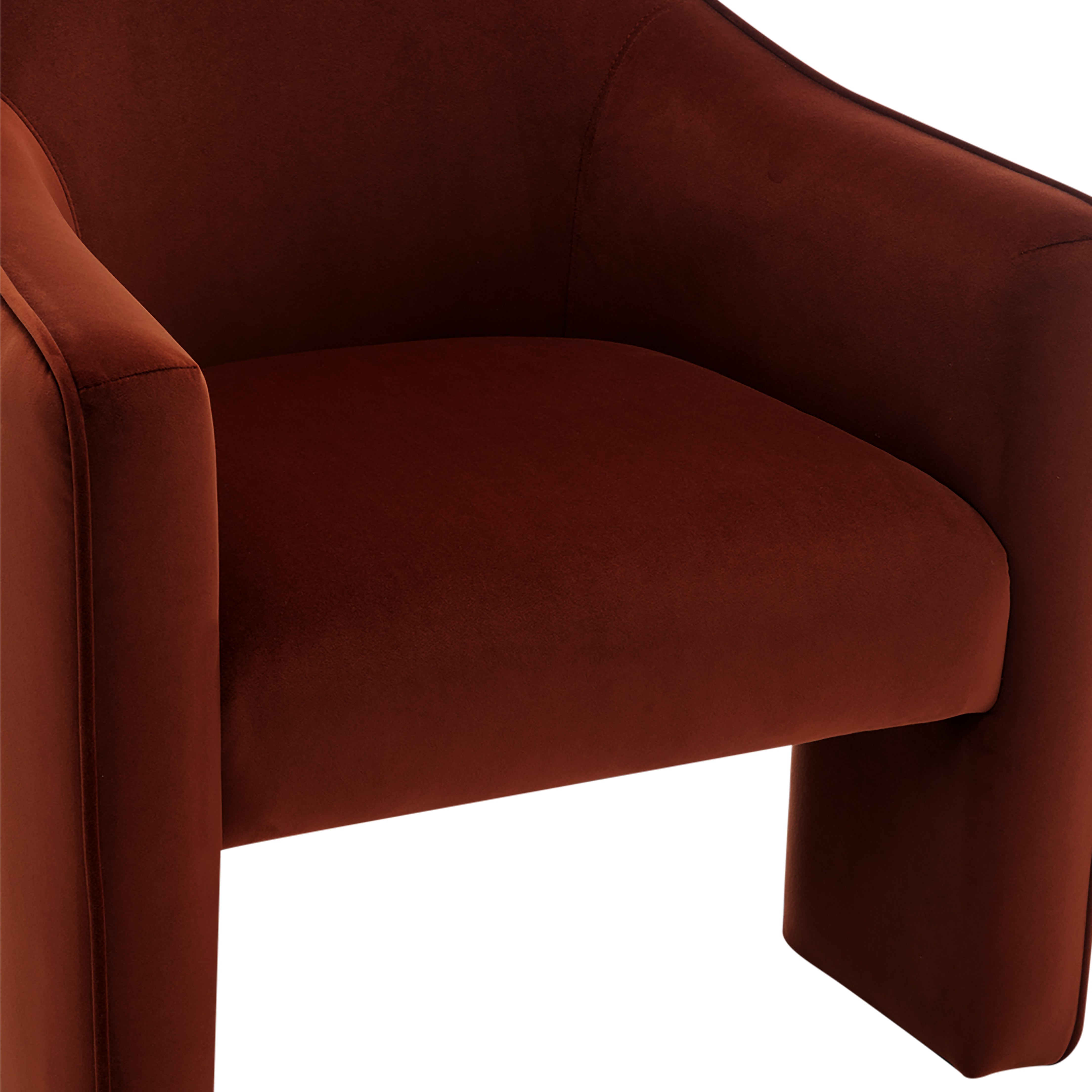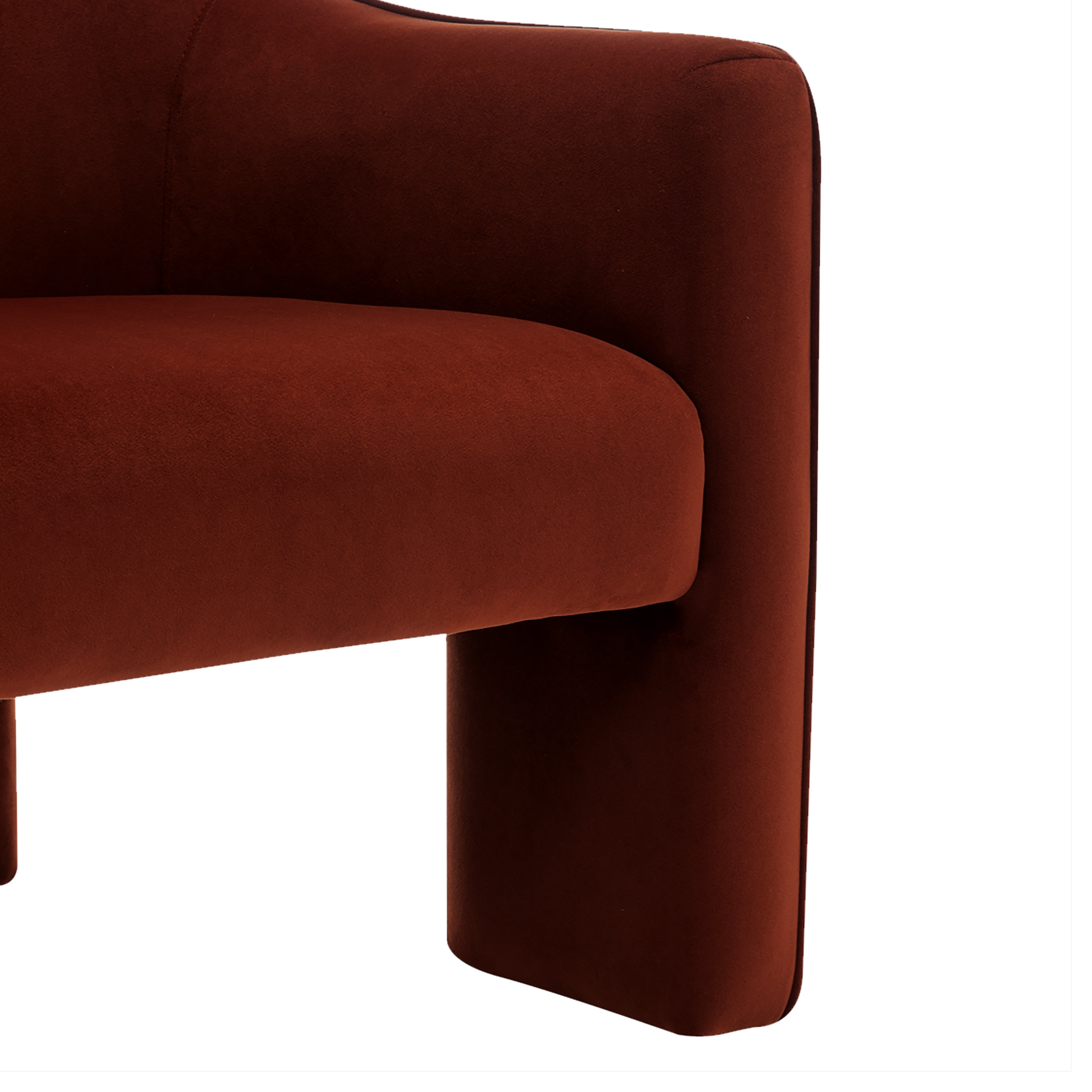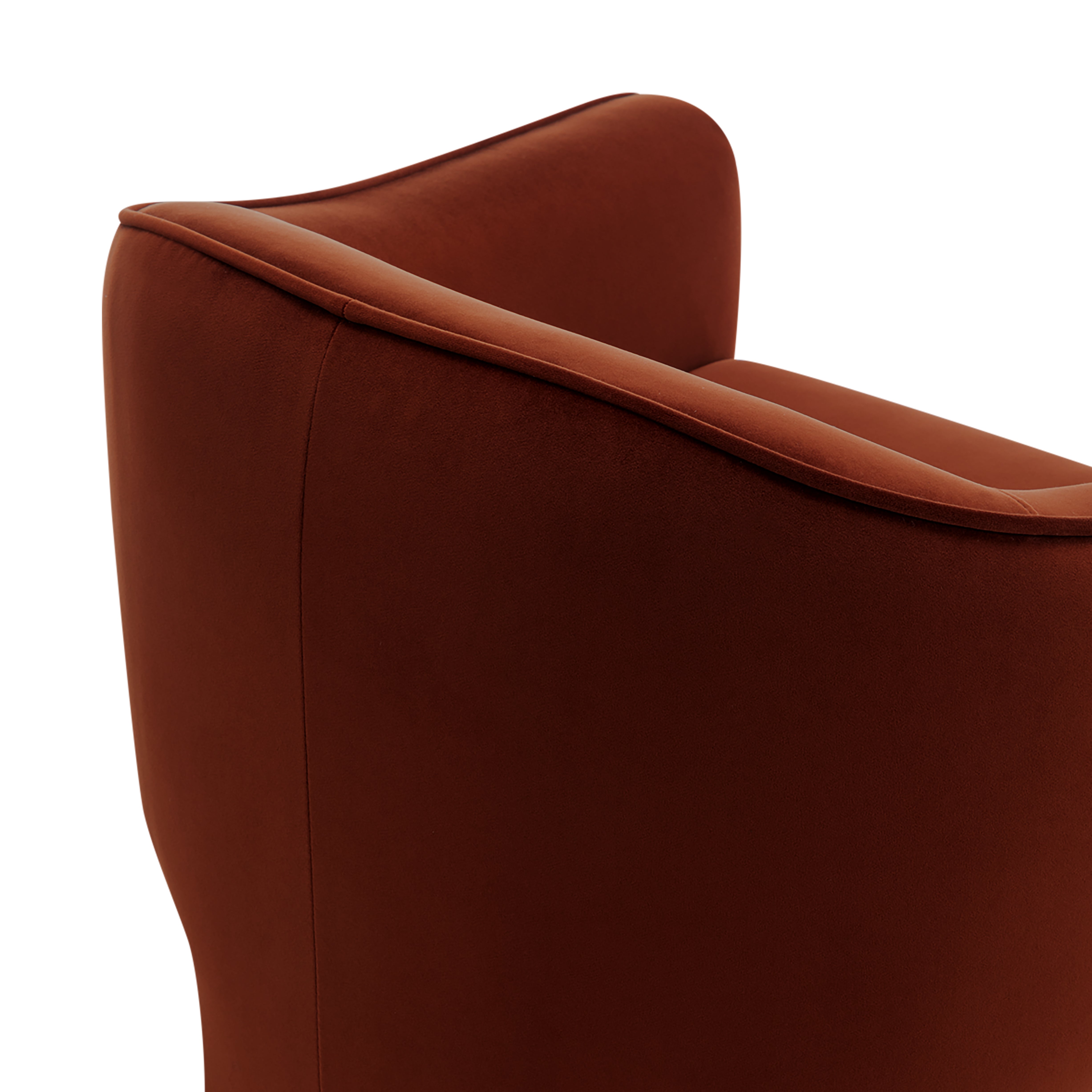 The Luna Chair blends sculptural curves with inviting comfort, making it a versatile statement piece for contemporary and casual spaces. Upholstered in rich velvet in Burgundy, Beige, and Caramel, or textured chenille in Sage, it offers a soft, tactile feel. Its bold yet refined silhouette suits living rooms, bedrooms, and relaxed lounge areas, effortlessly complementing modern and minimalist interiors.